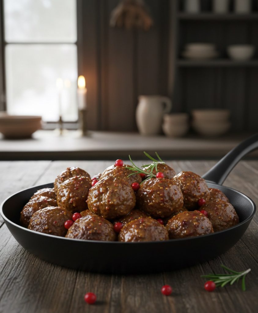 • till köttbullarna – vare sig du köper färdiga eller gör egna – se mitt recept ovan för egna och nedan för köpta, så kommer senapen ge den där härliga juliga smaken.