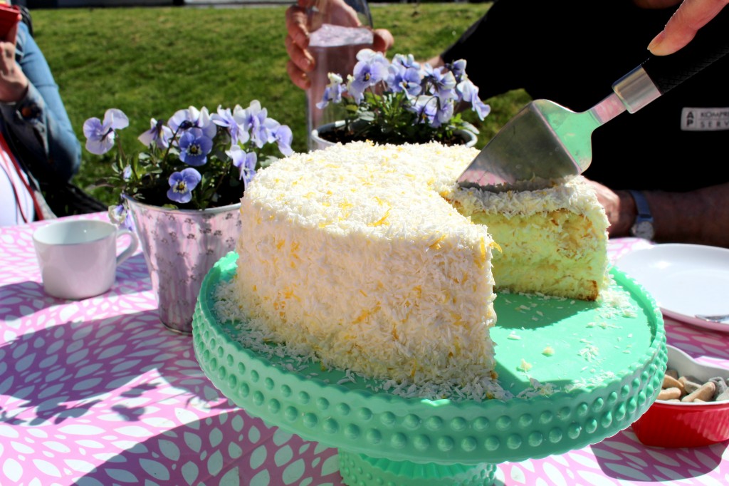 Vi satt precis vid vattnet och njöt. Solen värmde och det blev årets första fika utomhus. Jag åt en magiskt god apelsinruta med vaniljkräm, hummade högljutt alltså. Mördegsbotten med mörk choklad, apelsinkrämsfyllning och en härlig smuldeg uppepå. Jag lovar, den var magiskt god, måste testa baka något liknande.
