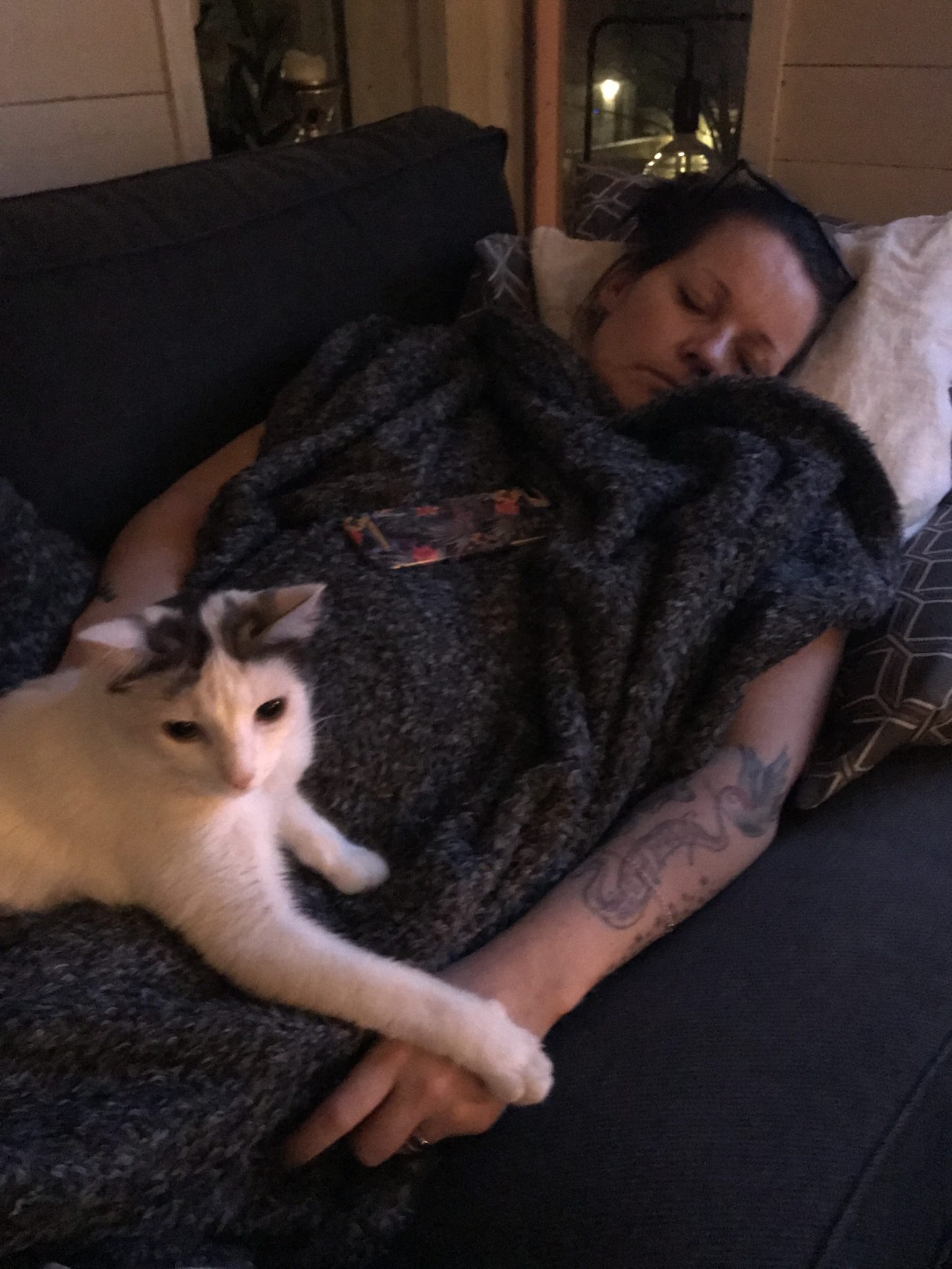 Mami såg då till så han låg på spikmattan och sen masserade jag honom med tigerbalsam så nu tror jag han är lite bättre.