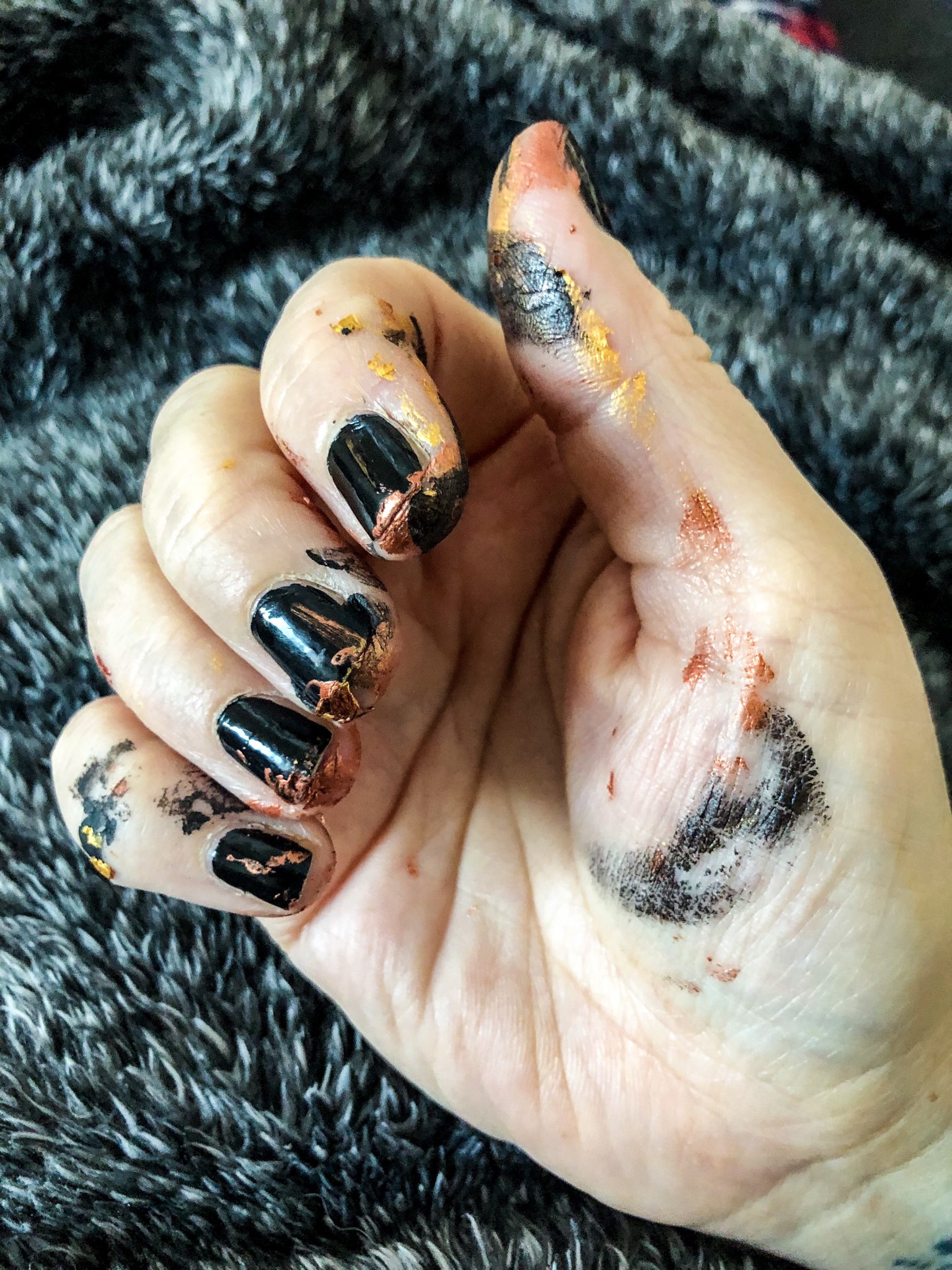 ”She” heter den. Längtat efter att måla kroppar igen, gjorde ju det i början när jag började måla ordentligt. Var så kul att göra den här målningen. Du anar inte hur den glittrar fint i solen.