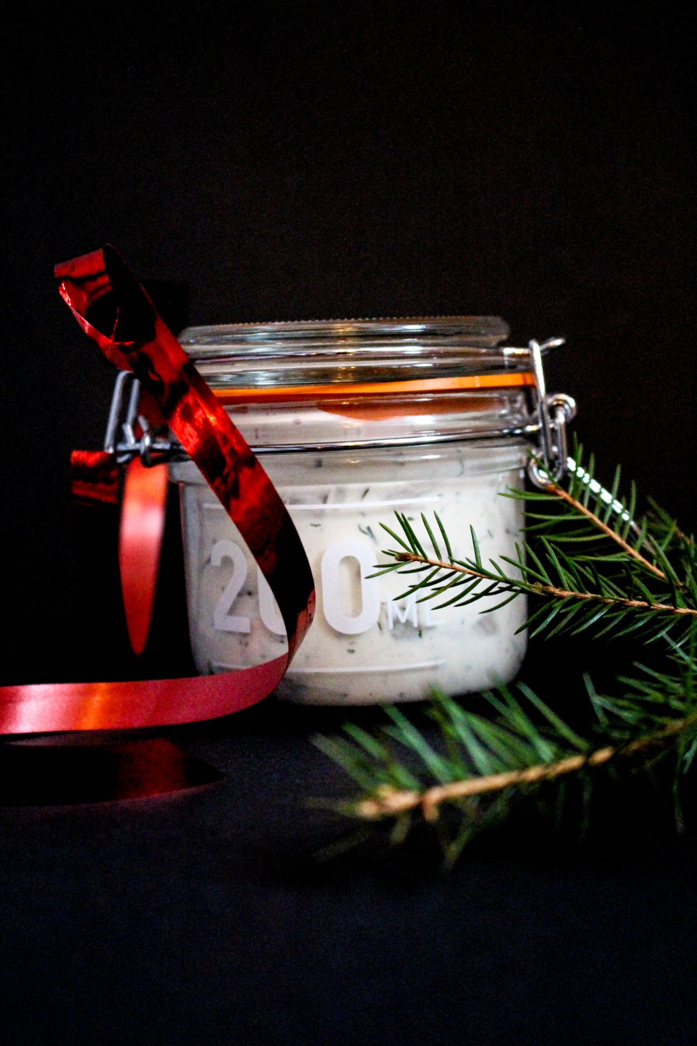 2) Hacka dillen så smått du kan. Häll i creme fraiche, pressad citronsaft, sirap, pepparrot och dill i bunken. Blanda om ordentligt. Häll upp i rena glasburkar med tättslutande lock håller den i ca 14 dagar.