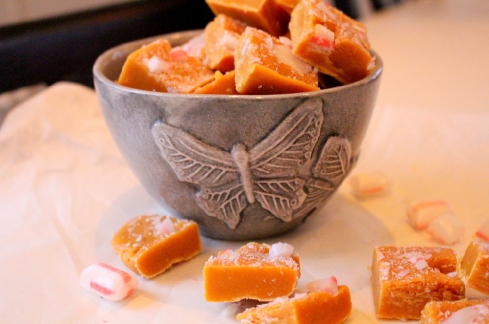 3) Tillsätt saffran och den hackade chokladen. Rör och blanda samman ordentligt. Nu har du fått ihop en superhärlig fudgesmet som är alldeles krämig.