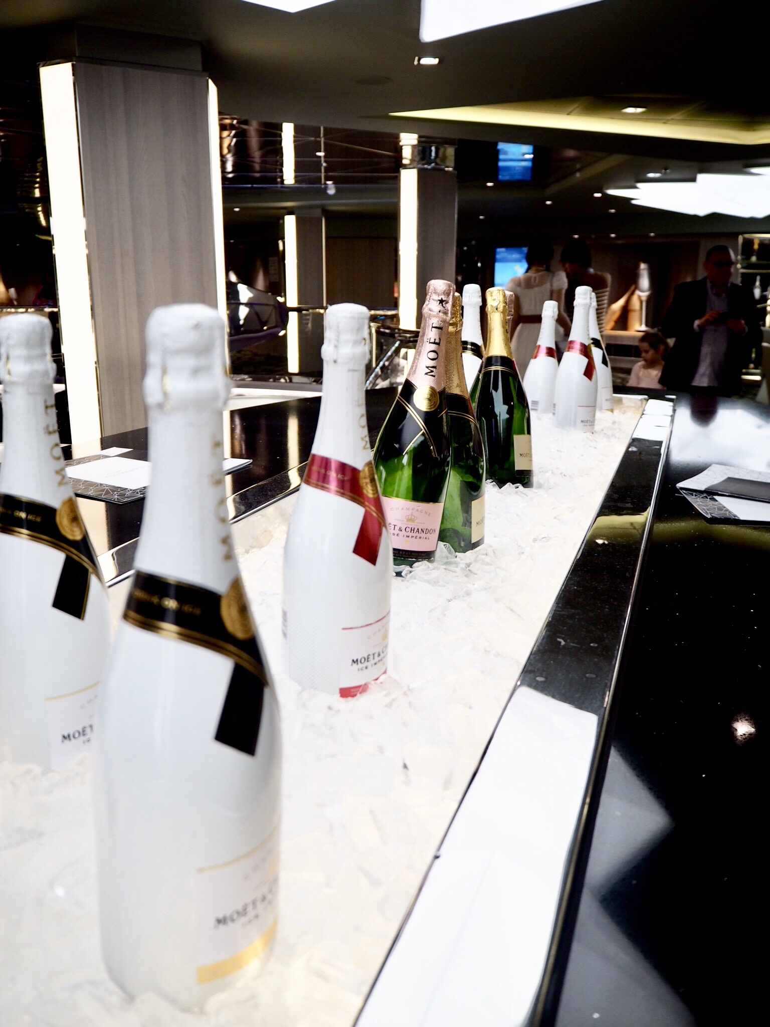 6) Ta fram 2 stora glas, t ex cocktail glas. Spritsa i chokladmoussen med stora runda rörelser så du får det fina mönstret.