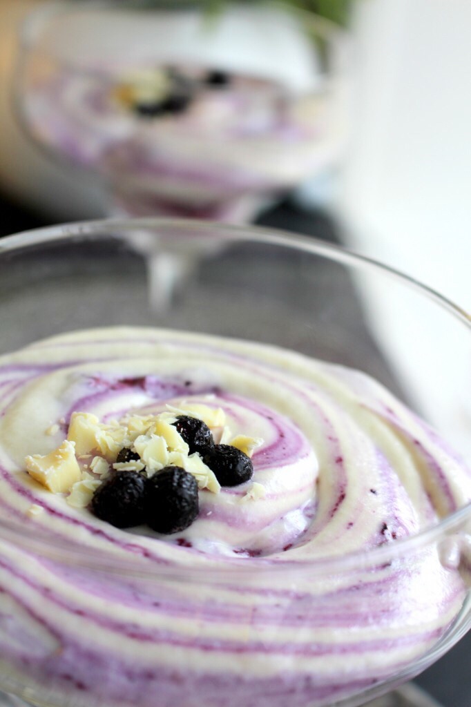 RECEPT VIT CHOKLADMOUSSE MED BLÅBÄRSSWIRL, 2 GLAS: