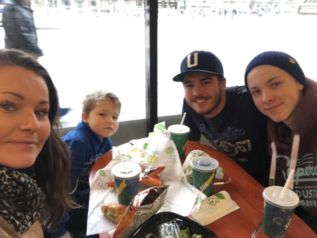 Grabbarna önskade Subway på vägen hem så då bjöd jag dem på det. Själv åt jag en sallad då det inte fanns något annat glutenfritt alternativ.