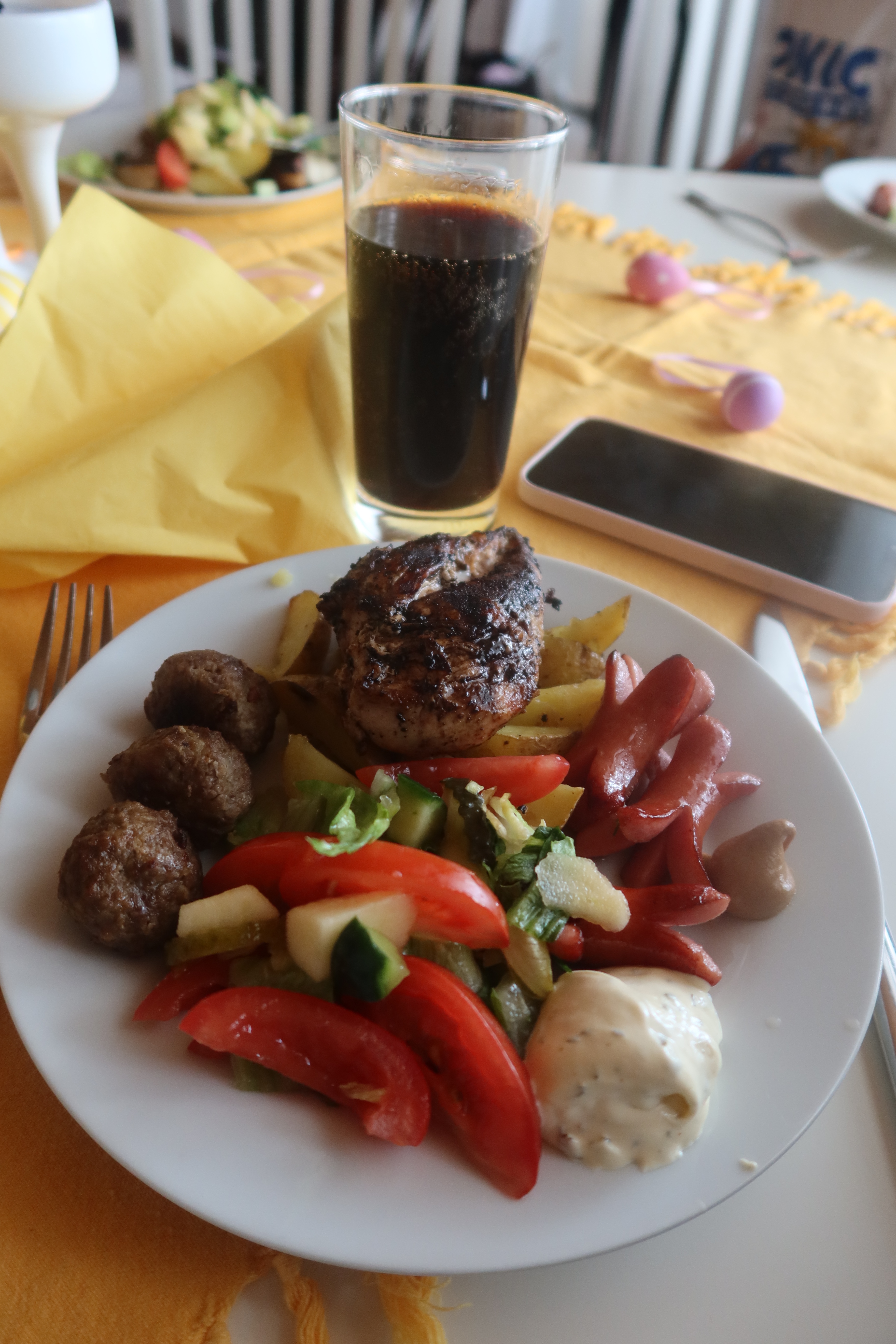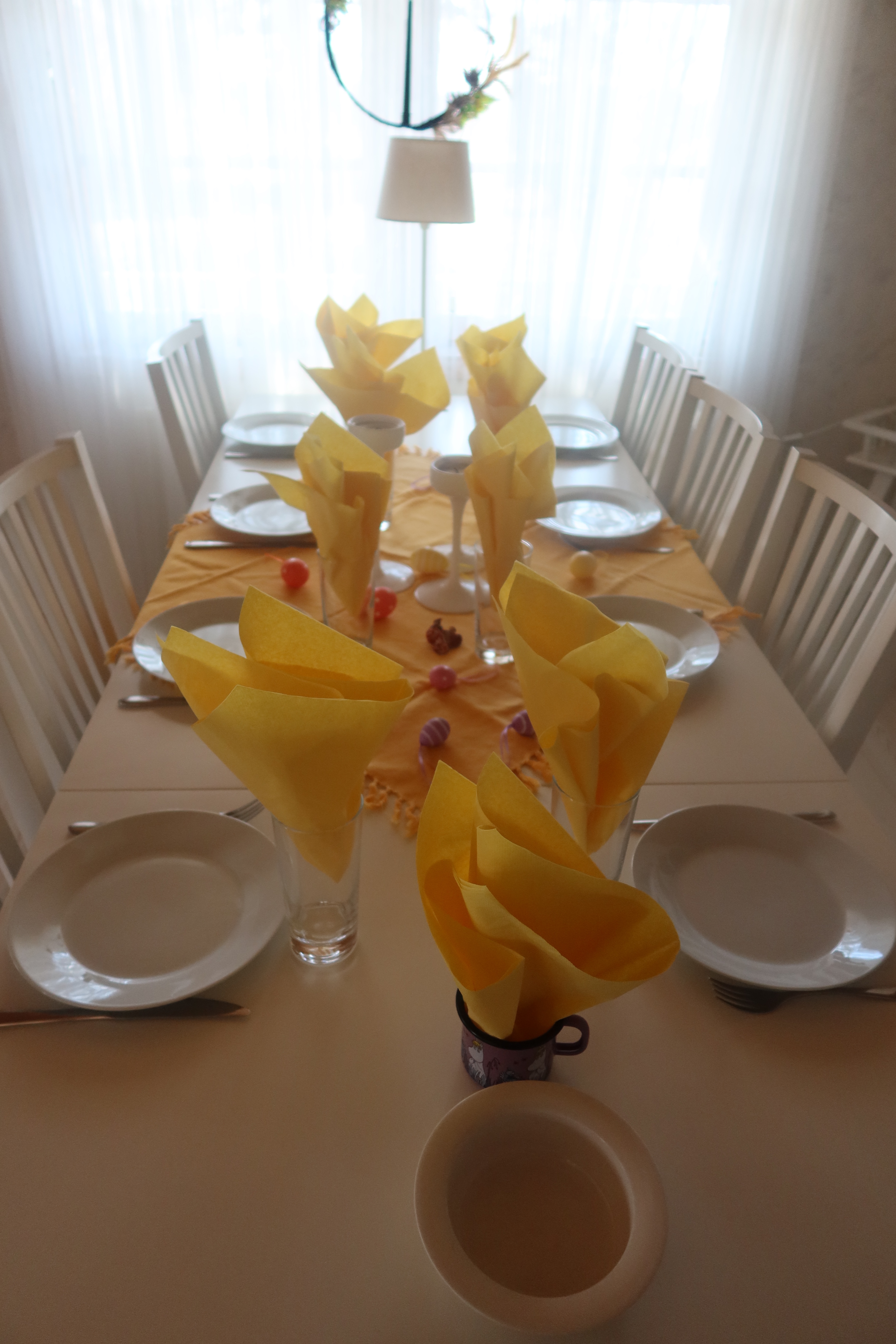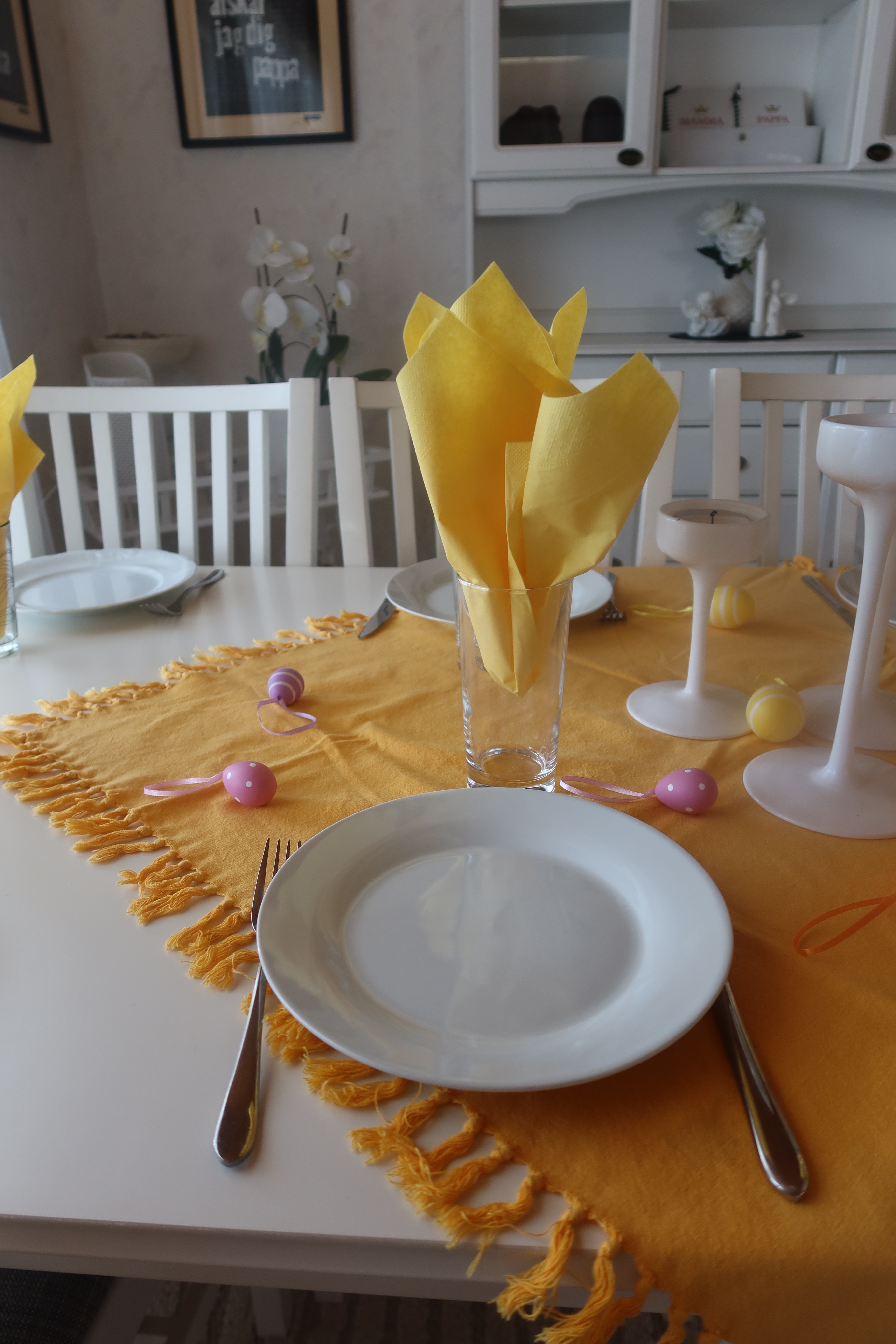 Mammas dukning, alltid påskigt till taket hos mina föräldrar på påsken. Älskar’t! Sen älskar jag att komma till färdigdukat också.