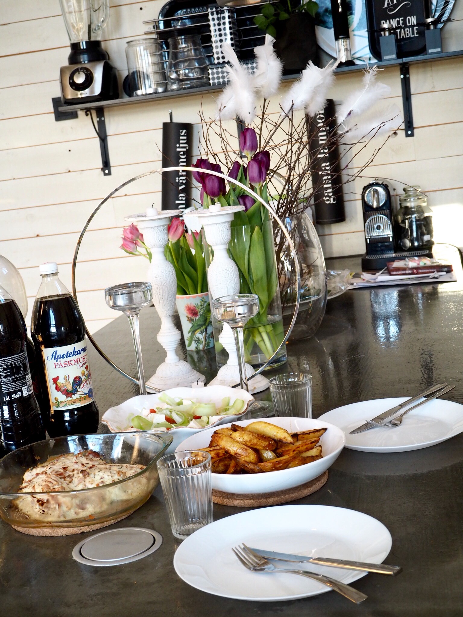 Vi firar inte skärtorsdag något speciellt men vi har ändå ätit lite gott. Klyftpotatis och kyckling med baconsås, recept på det hittar du HÄR.