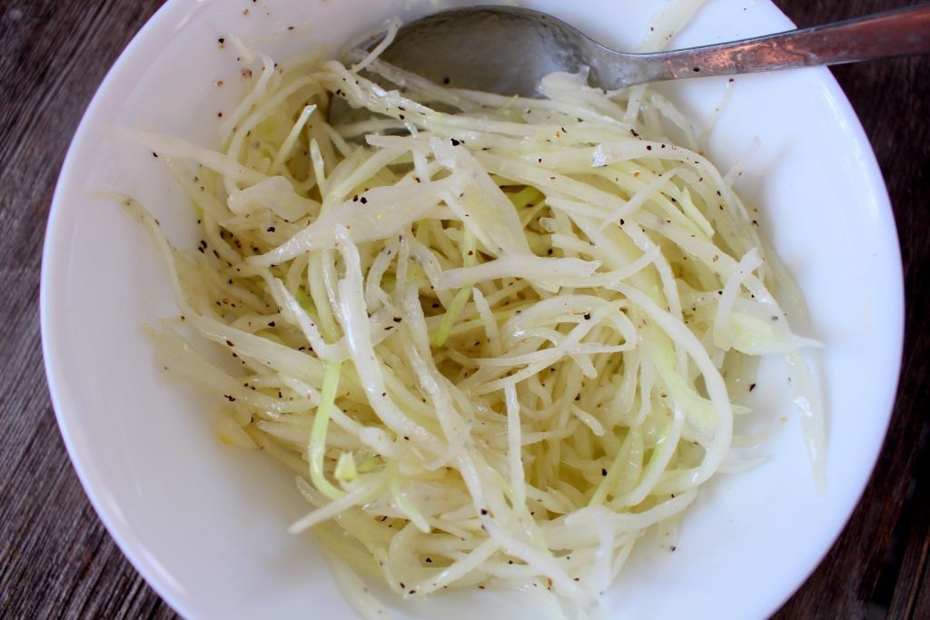1) Strimla vitkålen genom att hyvla den med en osthyvel. Funkar skitbra.