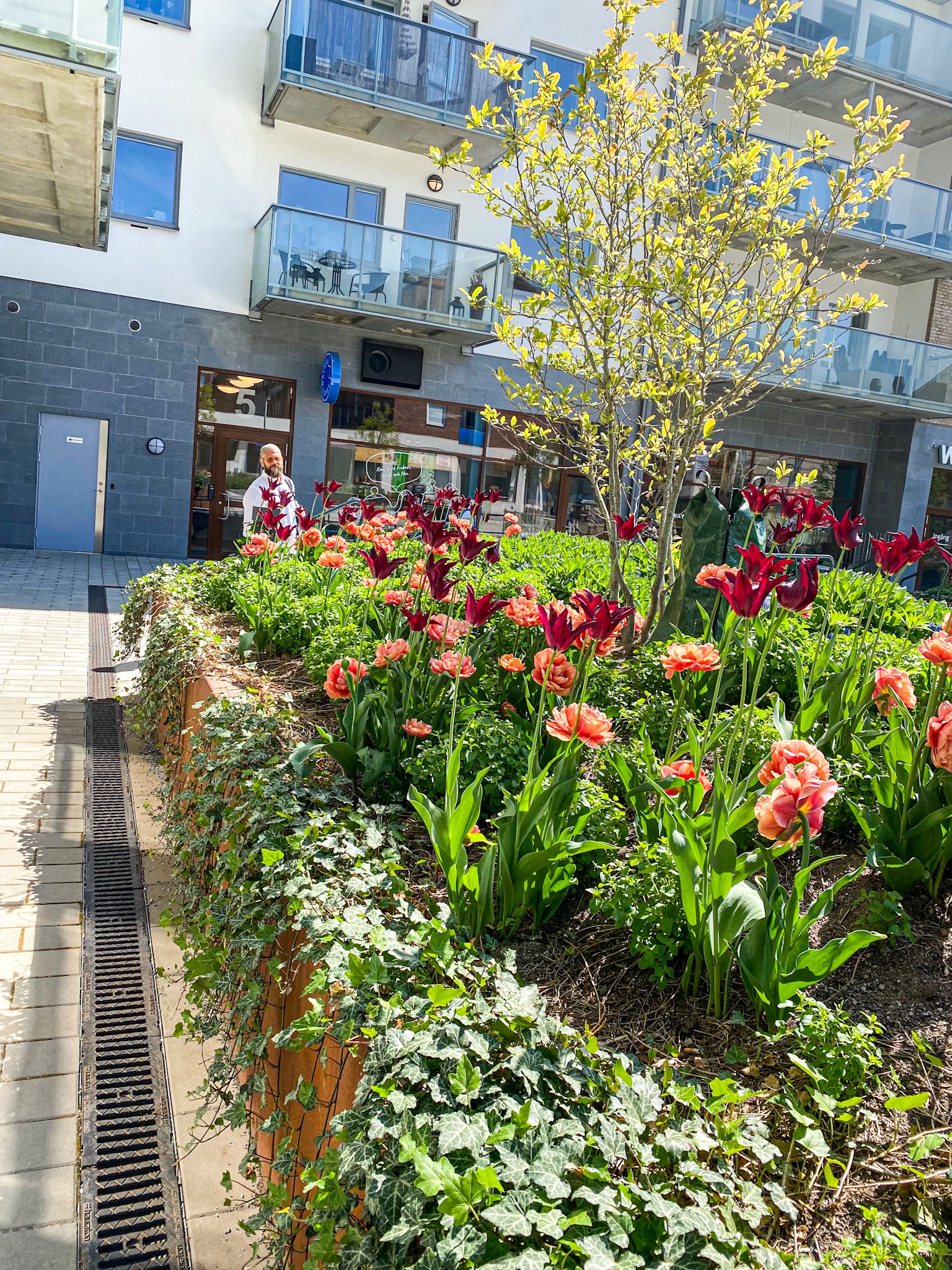 Upptäckte denna vackra rabatt utanför Waynes. Så många vackra blommor, inte klokt! Där fanns också både rosmarin och oregano.