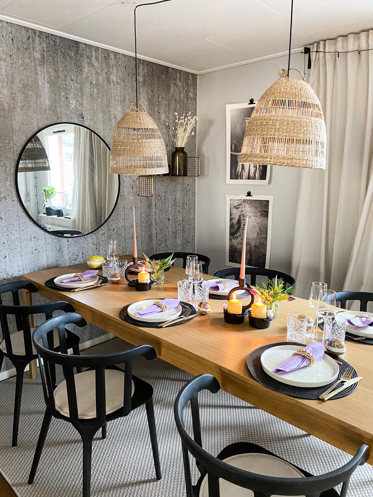 Jag dukade helt otippat med lila, jag som inte ens gillar lilla tyckte det blev såååå fint med den färgklicken på vår dukning.