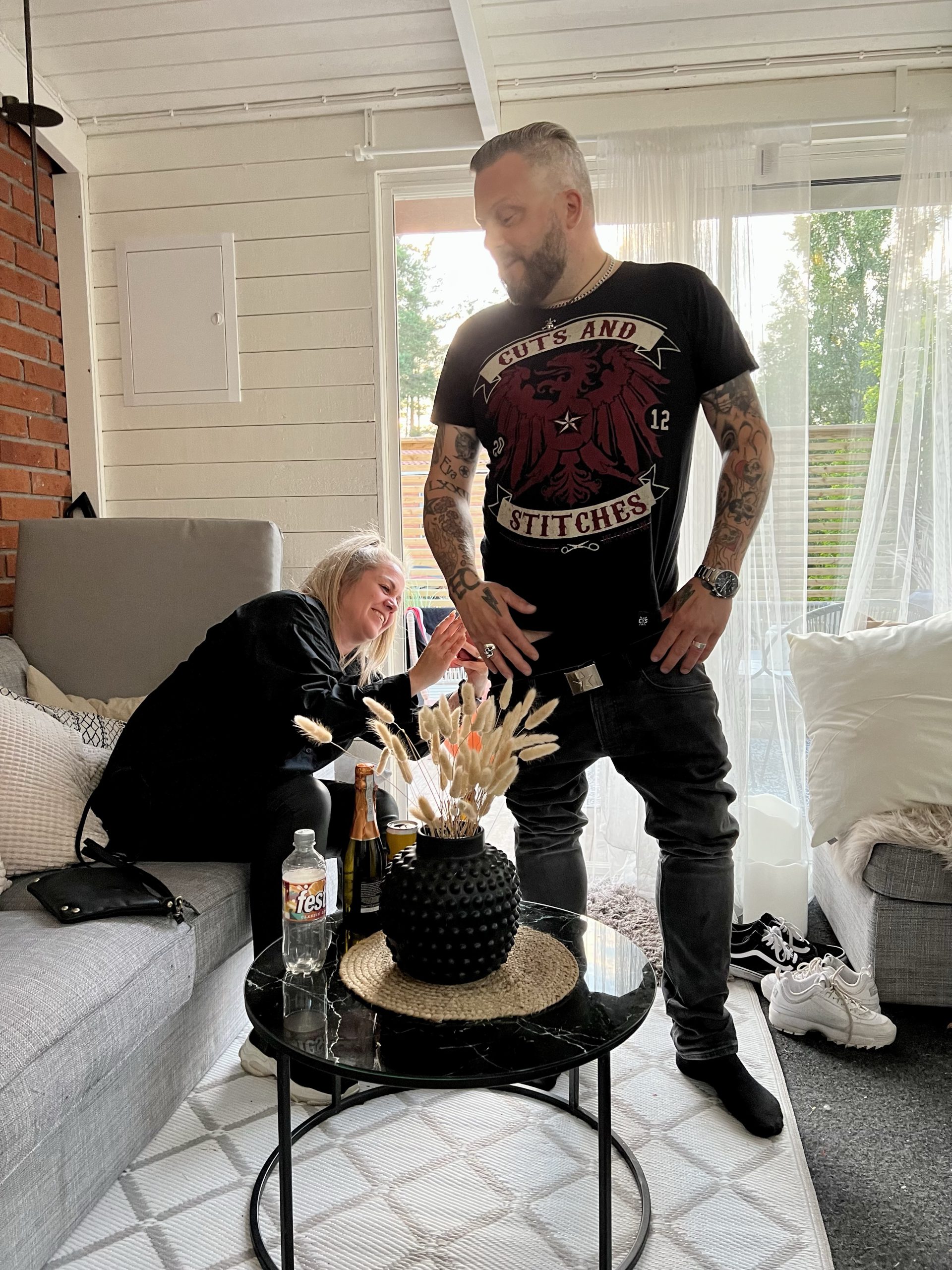 Efter middagen cyklade vi hem till oss. Tonys bror John med familj kom över till oss. Här skulle Eva ta lite foton till en möhippa till dagen efter. Blev nog rätt kul bilder. 🤣