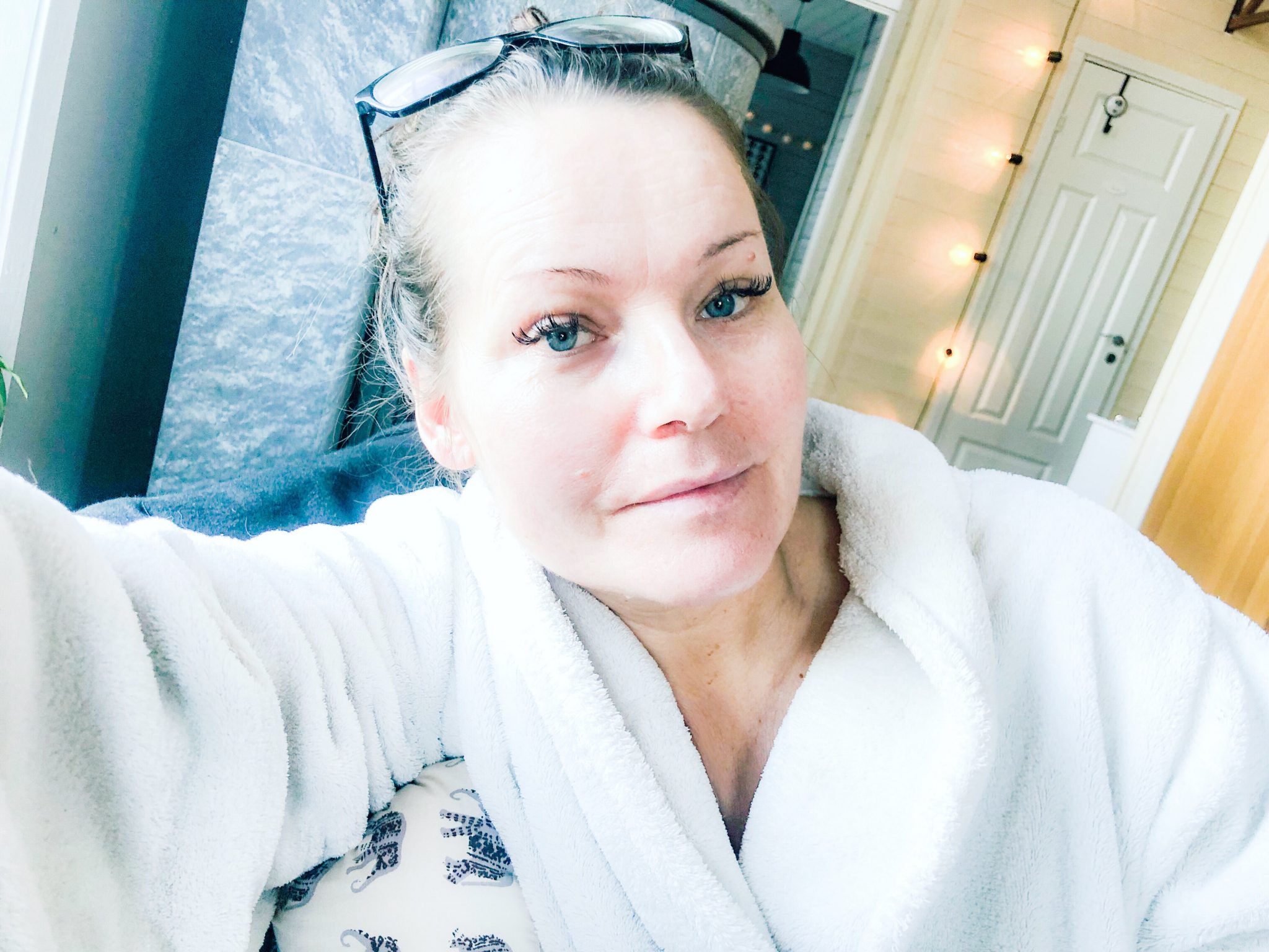 Denna morgon började jag med en plingplong dusch igen. Andades djupt i magen och försökte få en lugn och skön start. Tog också en stund på massagekudden.