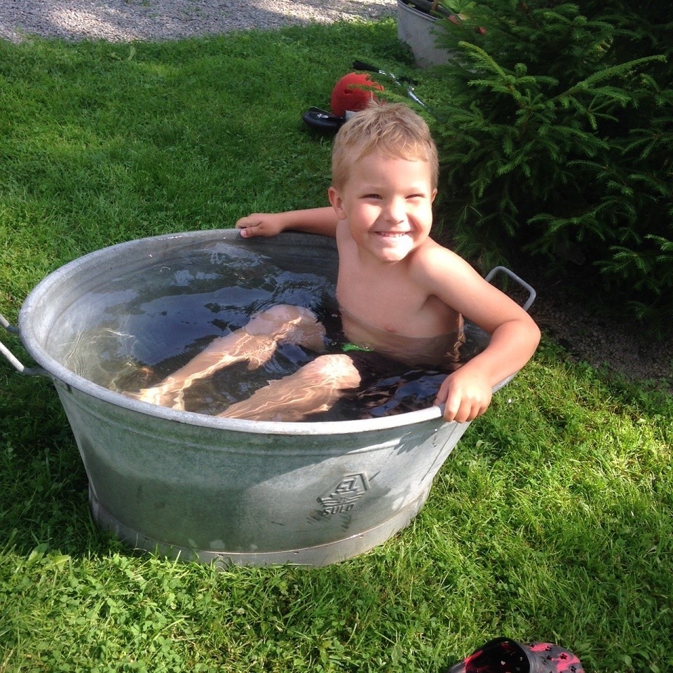 Gissa om det var härligt att åka hem till svärisarna och den här lilla minigrisen sen? Åh vad man saknar dom när man varit ifrån varann såhär. Han har isat konster med sin kick-bike och badat i en balja. Senare kom även Tonys bröder med familjer och så grillade vi oxfile och gjorde potatis på grillen. Ni måste testa det. Ta färskpotatis, lägg dom på folie. Salta och lägg på lite smör. Slå in paketen och grilla på grillen. Dom blir så galet goda alltså.