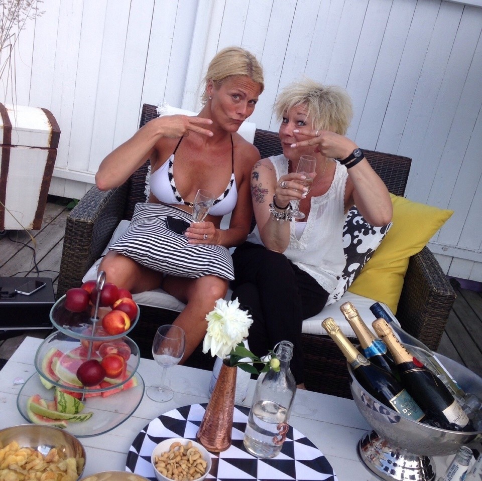 Jaha, igår var det alltså tjejfest. Våra karlar spelade golf och vi tjejer hade poolparty hemma hos Kattis. Började med att Maria kom förbi mig en snabbis innan vi cyklade ner. Jag dukade upp lite gott att dricka i poolhuset. Värmen var heeeeelt galen igår alltså, my god!