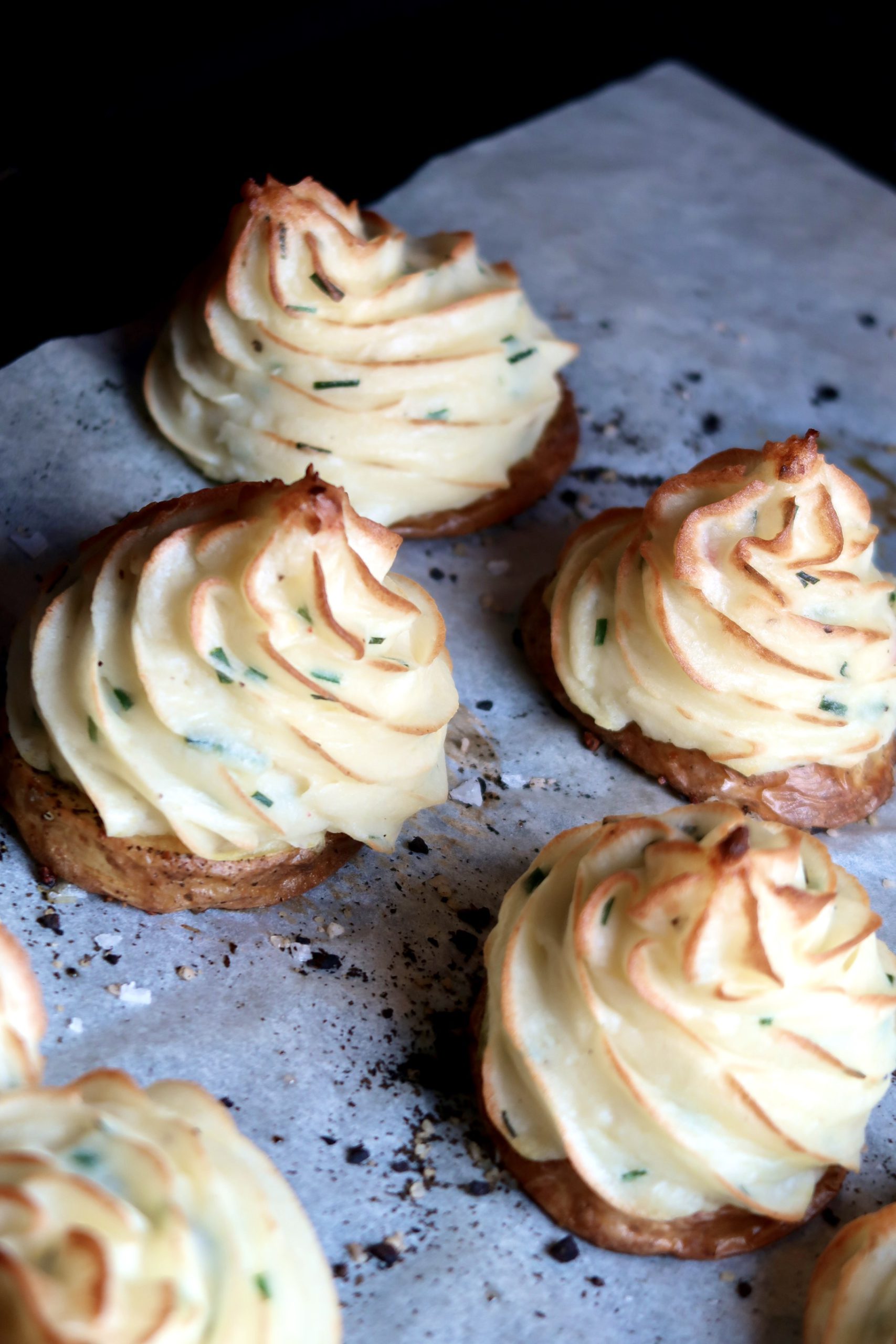 Ja jag tänker att du förbereder det fram till att du har moset i spritsen. Sen spritsar du ut det innan gräddning. Annars är jag rädd att moset får lite skinn om du förstår vad jag menar?