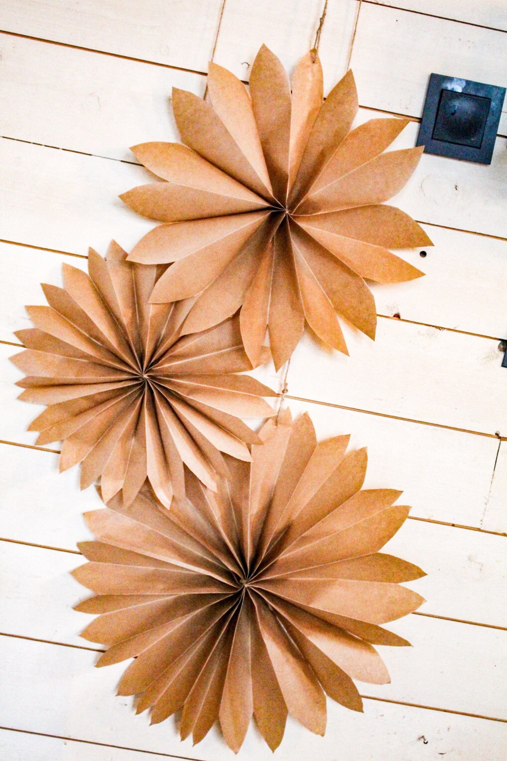 Här har vi 2 som jag vikt av tapetprover som vi hade hemma. Dessa har jag klippt lite hål i också så ljuset sipprar igenom.