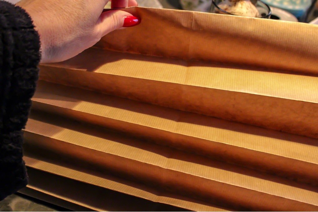 Vik det som man viker kanterna på smällkarameller om du minns. Här är inte jag ett skvatt noga, jag bara viker på. Ojämnt och jäkligt men det funkar det med.