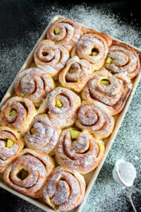 16. Blanda alla ingredienser till glasyren. Häll det över bullarna.