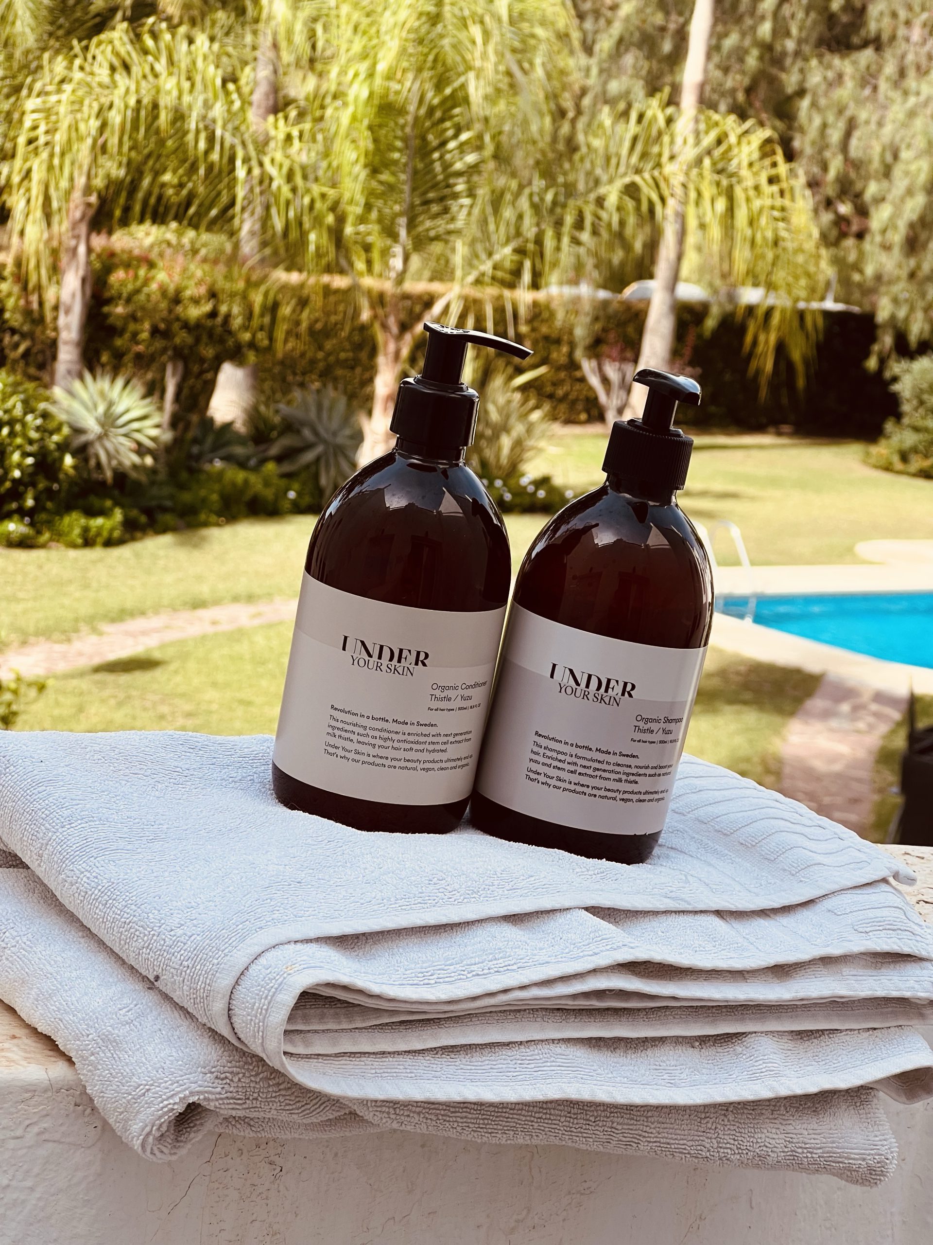 Jag vet att ni är många som längtat efter en rabattkod på mina absoluta favoritprodukter när det kommer till att sköta mitt hår! Gissa om jag mått risigt i håret då jag första månaden inte hade mina Under Your Skin produkter här i Spanien? Jag fick lite börja om från början med produkterna när jag väl fick mitt paket hit till mig. Hade ju ”förstört” det med annat schampo och balsam. Men nu så, nu börjar jag känna igen mitt hår igen. Behöver inte tvätta det lika ofta och så är det glansigt och lättskött helt utan frizz.