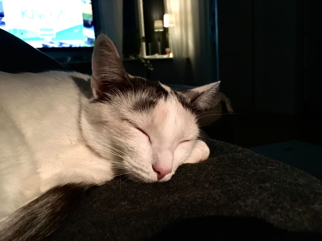 Hon är extremt gosig också. Vill vara nära, helst i knät om hon får. Lilla lilla hjärtat. Vet ni vad jag känner också? Låter kanske sjukt…. men jag är så rädd att jag fäster mig vid henne för mycket och att hon ska dö som Toxy. Bli sjuk eller nåt… Det där med fäster sig är nog redan försent, hon är min lilla tjej ju. Men du fattar va? Känns som jag stretar emot lite….för jag är livrädd att förlora henne.