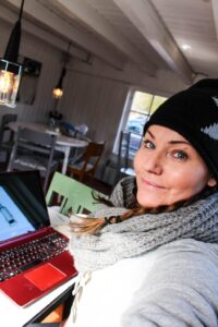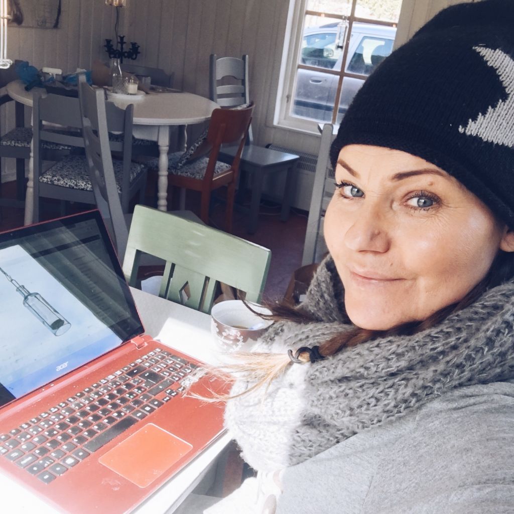 Här sitter jag och jobbar lite vid datorn samtidigt som jag väntar på att färgen på bordet ska torka lite. Det är alltså multitasking på hög nivå nu. Haha…. Ena stunden sitter jag på huk på golvet och målar, den andra dricker jag kaffe och jobbar vid datorn. Men det går bra det med….