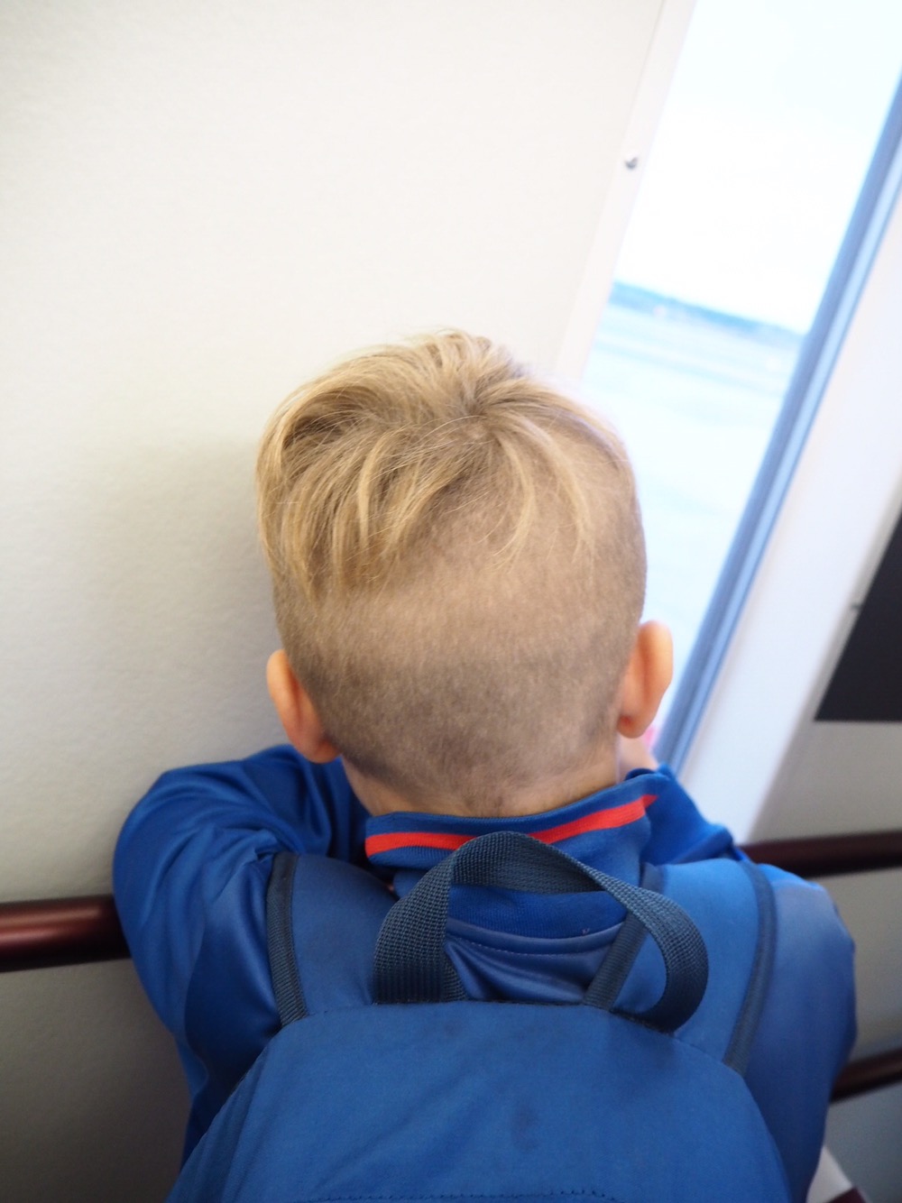 Här var vi på väg in mot planet. Här började jag känna att allt kändes lite annorlunda. Här står jag i regel och hyperventilerar eller andas inte alls! Har oftast en riktigt obehaglig panikkänsla i kroppen. Men den här gången kände jag ett märkligt lugn i kroppen som jag aldrig tidigare känt i dessa sammanhang. Sa inte ens att jag var rädd till flygvärdinnan som välkomnade oss, det för jag alltid annars. Vi bokade platser med extra benutrymme för att jag skulle ha lite space. Det kan jag VERKLIGEN rekommendera till dig som är rädd! Det gav mig luft och frihet på något sätt. Kändes inte alls trångt och panikartat liksom. Jag hade dessutom Milo bredvid mig och Tony bakom. Av någon konstig anledning var Milo rädd vid starten. Dock ska jag säga att jag ALDRIG pratar om min flygrädsla inför honom JUST för att jag absolut inte vill överföra den på honom. ”Kommer vi krascha?” frågade han plötsligt när vi satte på oss bältena. Jag förklarade att vi inte skulle det. Berättade om all statistik som jag själv suttit och präntat in i skallen innan resan. Vet ni hur bisarr känsla det var? Som att jag var en annan person som satt där och lugnade mitt barn – fast typ mig själv också, utan att Milo visste det. På något sätt satt jag och väntade på att jag skulle flippa ur. Bli för rädd och inte orka med Milos rädsla mitt i allt. Men det hände inte. Kände mig som en trygg maskin på något sätt. Som i en krissituation måste hålla ihop sig själv för att lugna personen som är rädd. Helt jäkla bisarrt! Självklart var jag rädd och spänd, men inte på samma sätt….. Milo klarade allt toppen. Tyckte starten var häftig. Jag spände fingrarna lite hårdare i handtagen men var faktiskt inte sådär hysteriskt rädd som sagt. Djupandades lite och kände mig mer spänd och lite tagen, typ så. Sedan pratade jag med Milo. Sa saker som ”Visst är det häftigt när det går så fort?!” ”Nu ska vi upp till solen”?! Satt också och förklarade de konstiga luftgroparna och varför det blir så. Ja men jag säger ju, heeeelt bisarrt! Milo tyckte om att flyga. Var inte alls rädd sen när vi kom upp på höjd. Dessutom köpte vi hörlurar med tillgång till film och spel. Bra som tusan!