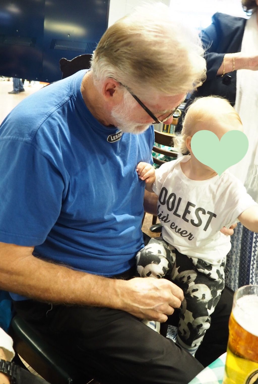 Kan säga att de nog var en stor lättnad att få sätta sig tillrätta. Lille Edward i min pappas knä. Han AVGUDAR min pappa. Precis som Milo när han var liten. Han var helt galen i min pappa. ❤️