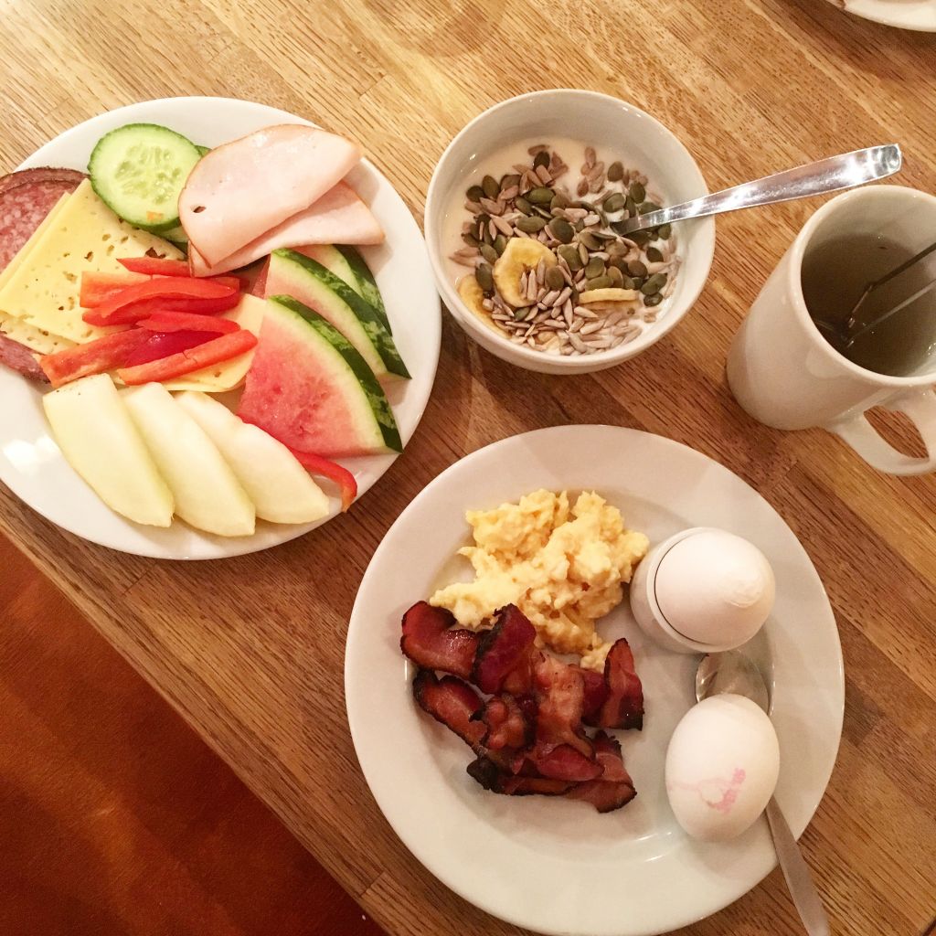 Vi njöt av riktigt god frukost i morse. ÄÄÄÄÄÄÄÄÄÄäääääääälskar hotellfrukost. Men tyvärr så är jag ensam om att göra det i vår familj. Jag skulle kunna sitta och äta frukost i flera timmar medan familjen typ gärna hoppar över det målet medan jag aldrig skulle kunna strunta i en frukost. Hmmm, men jag tvingar dom att äta frulle, ni vet….dagens viktigaste mål. 🙂