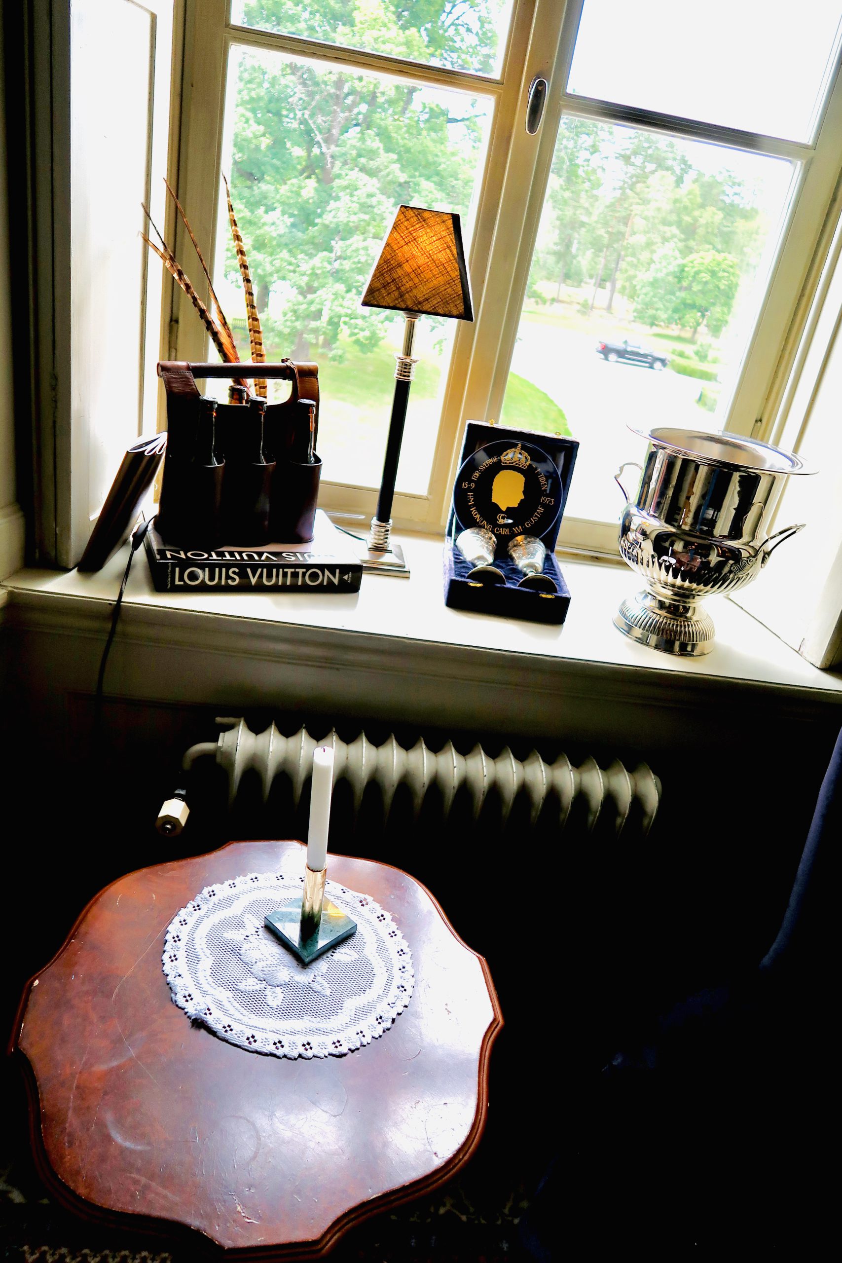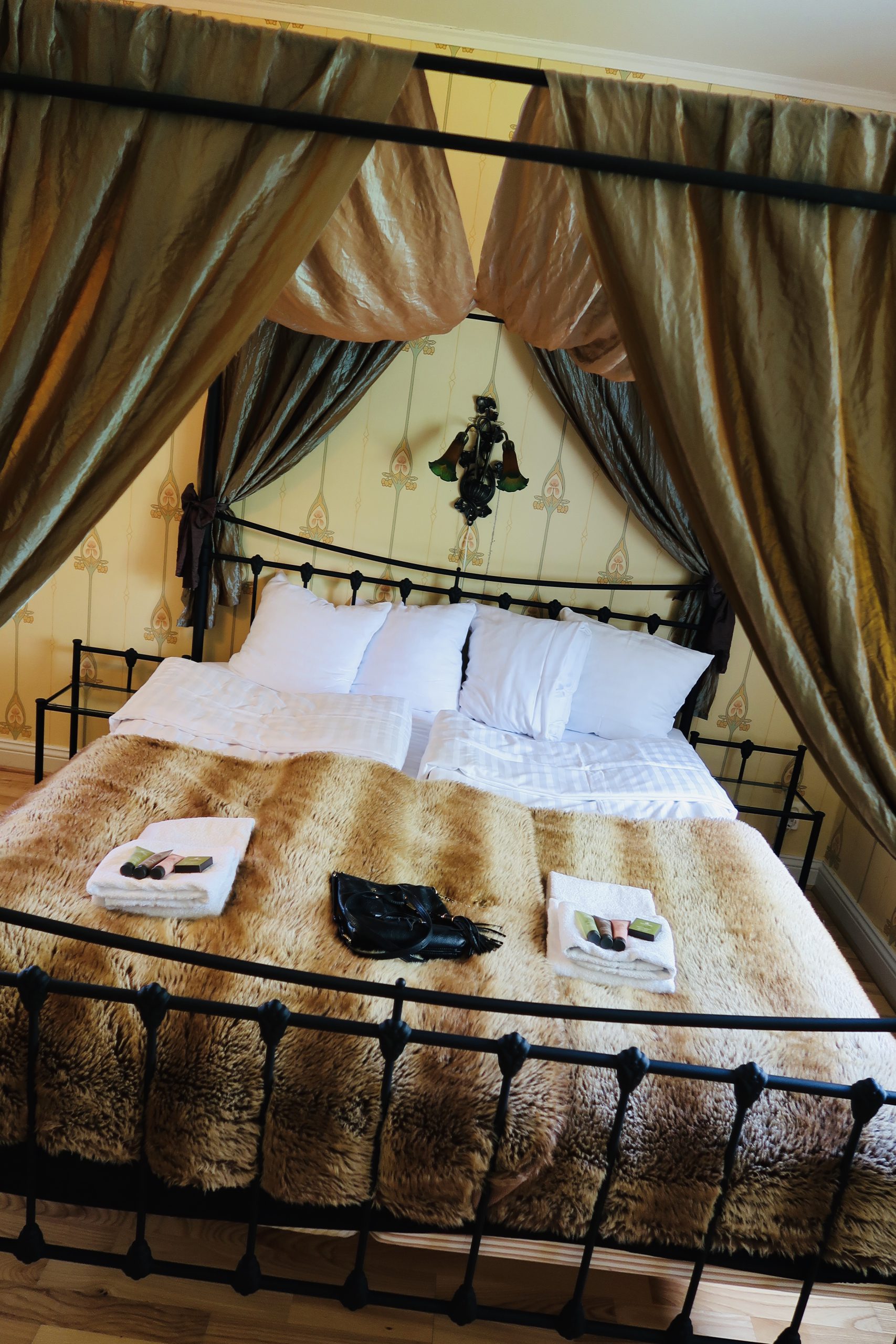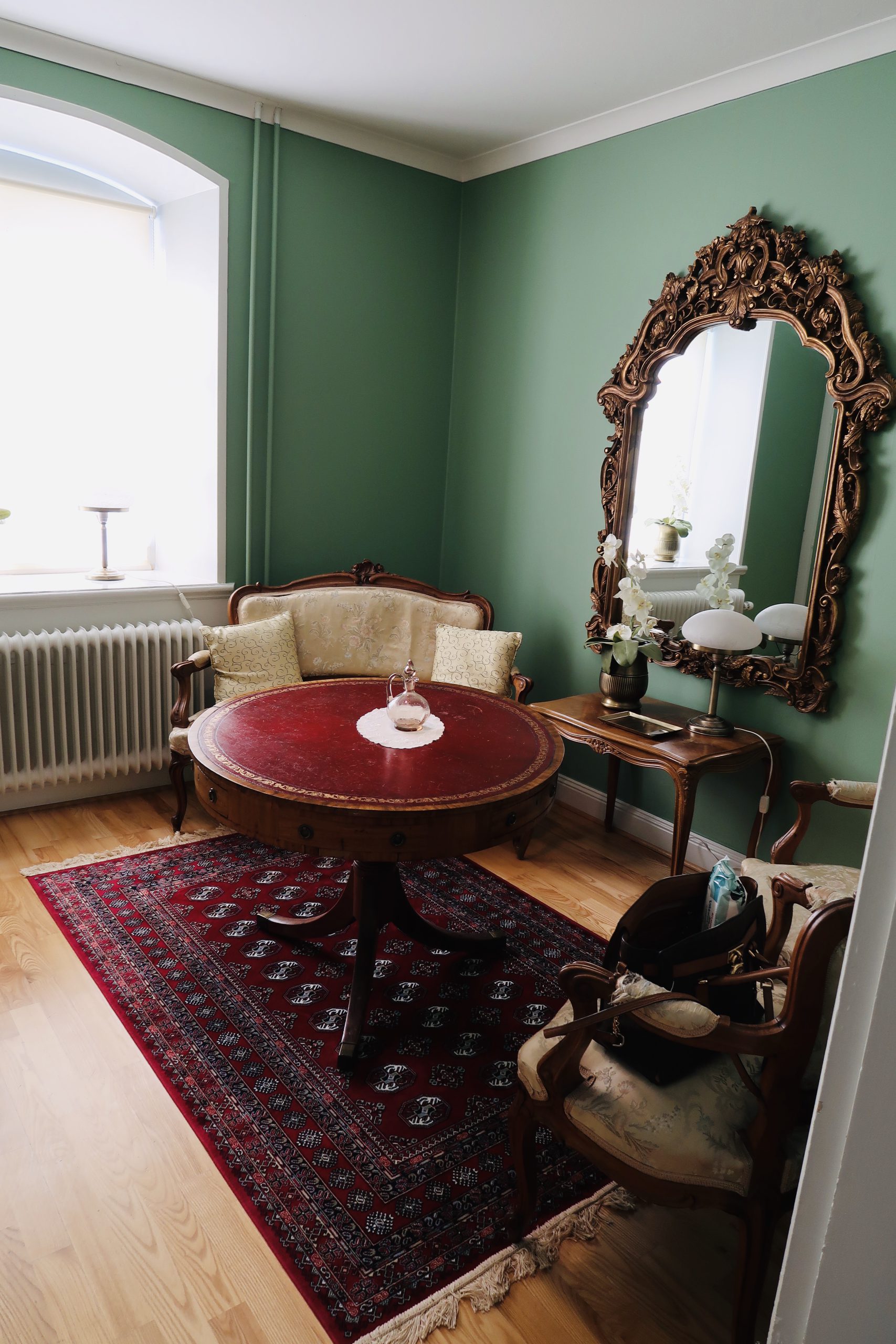 Vi blev uppgraderade till en liten svit pga en avbokning, mysigt ute i den norra flygeln. Fanns t.o.m en kakelugn på rummet.