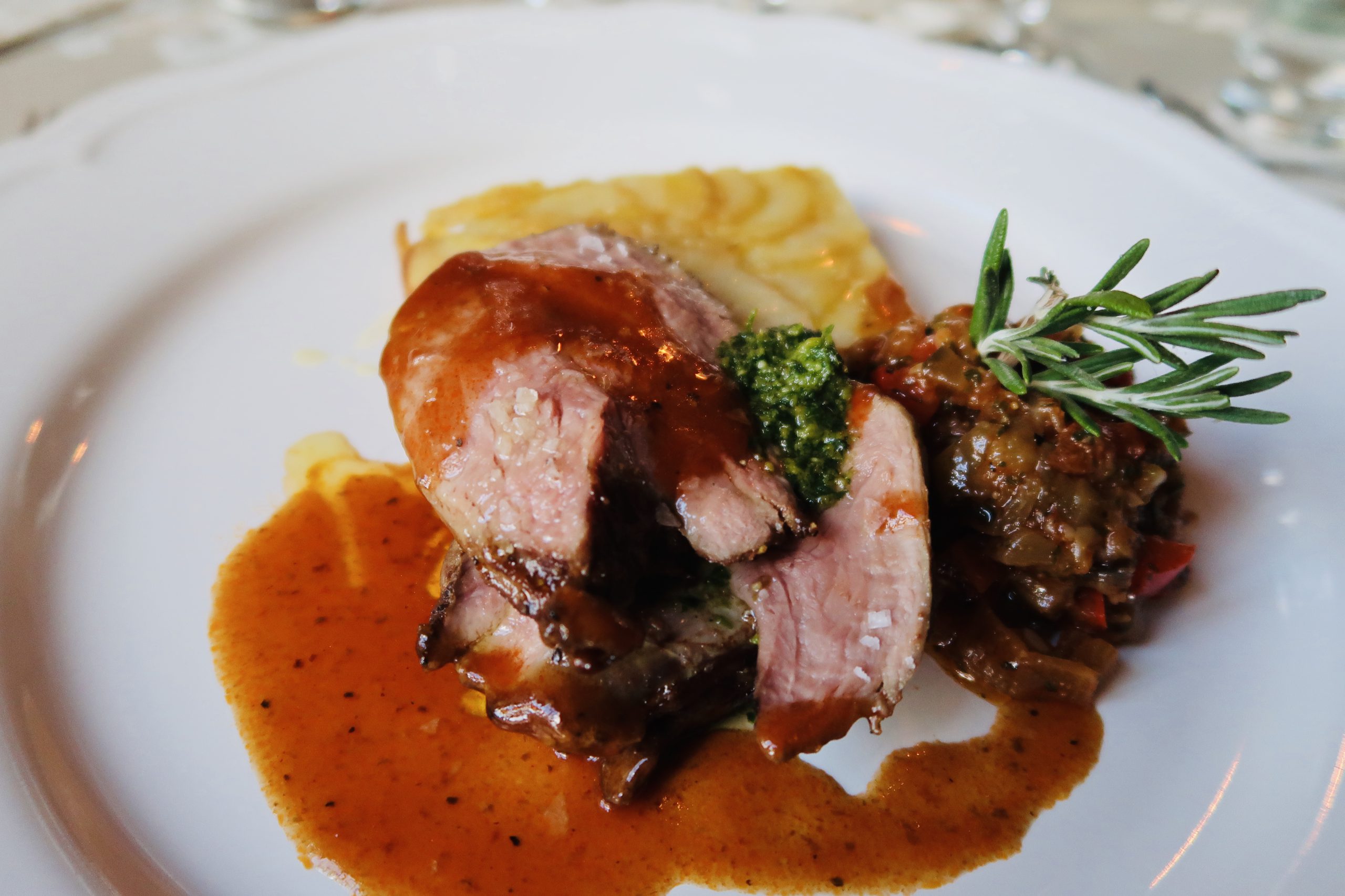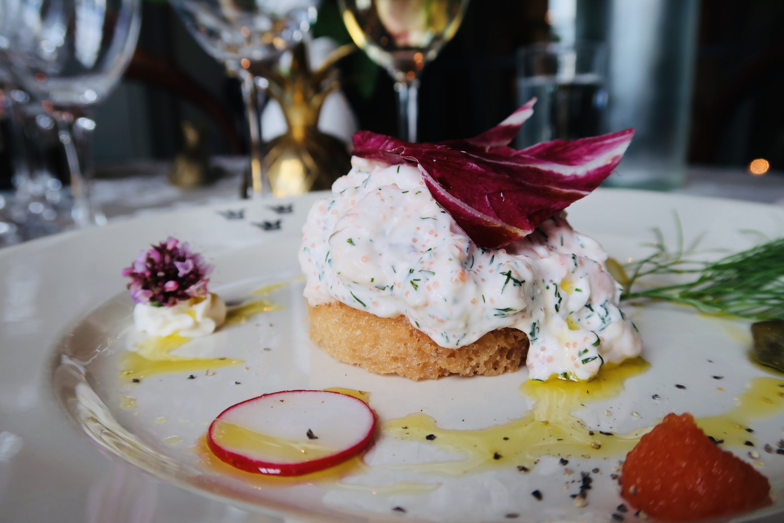 Vi fick ett mysigt bord, ett litet rum bara för oss där ovanför trappan. Fint dukat var det också. Jag älskar ju att komma till vackra färdigdukade bord, det är höjden av lyx!
