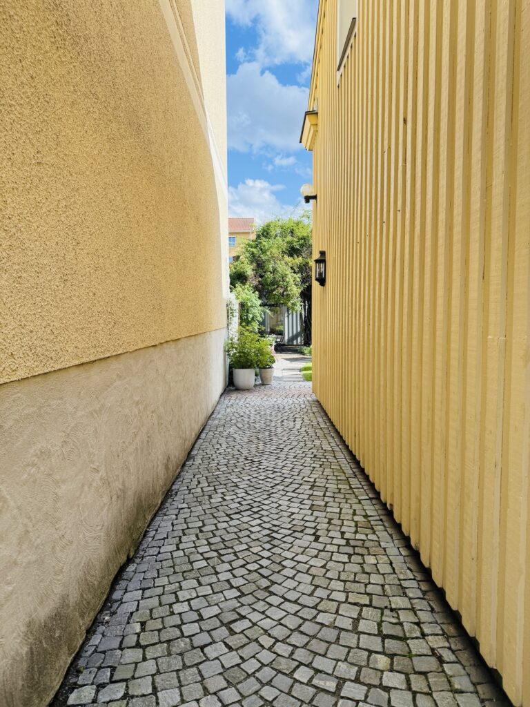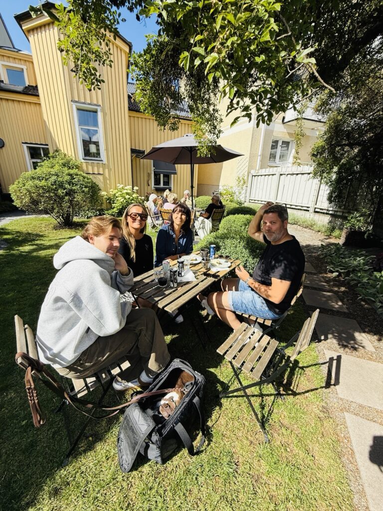Alldeles fantastiskt mysigt på denna innergård. Det roliga är att jag satt och mindes tillbaka, för att precis bakom det vita staketet bodde jag i min ungdom. Vilda fester, killar och outfits – alltså jag bodde där som 20 åring. När livet var som allra roligast. Åh herreminjee så mycket roliga minnen jag har därifrån. Inte ens rumsrena storys alla gånger, inte när en av ungarna, ex-sambo och nuvarande man satt där dessutom. Hahaha….. alla har vi varit unga en gång i tiden. 😜