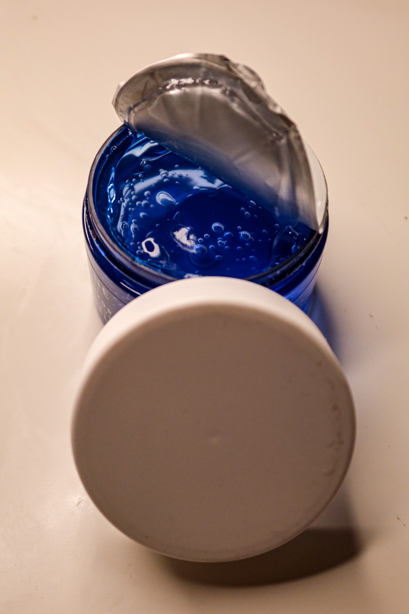 Ett hett tips till dig som tycker att du ser ovanligt rynkig ut, känns glåmig och trött i ansiktet, kör den här! Alltså jag kände mig 10 år yngre efteråt, haha… Det var som om huden liksom fick dricka och äta, och sova 8 timmar. Ser ni konsistensen? Som en gelé. En kall härlig boostande gelé. En syremask som ger lyster och återfuktning i 72 timmar med rent arktiskt källvatten, nordisk björksav (you had me att björksav – då otroligt hälsosamt), hjortron och blåbärsvatten. Jag har den på i 15 – 20 minuter. Sååå skönt efteråt.