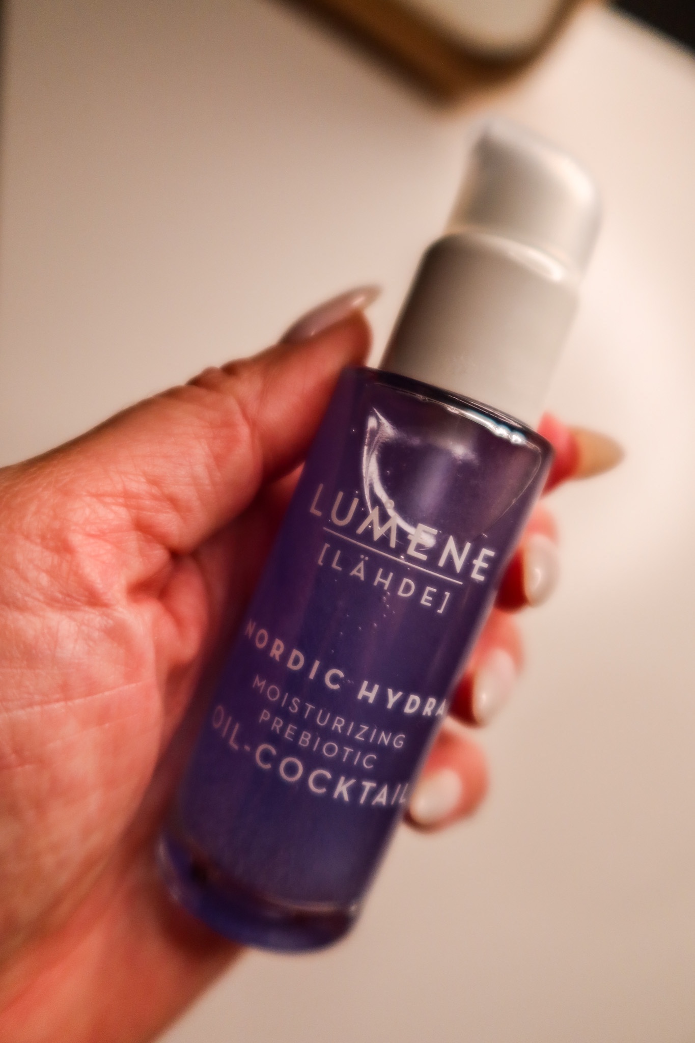 Moisturizing prebiotic oil-cocktail (<klickbar länk). Efteråt så tvättar jag bort masken. Sedan skakar jag om den här flaskan och så ger jag huden ytterligare en cocktail av en återfuktande olja, prebiotisk (inflammationshämmande) xylitol som bygger upp hudens fuktbarriär på en ny nivå. Den var så härligt att ha på efteråt. Jag har ju extremt känslig hud i ansiktet, dessa passade även mig som känslig. Tips tips! Så skön och härlig känsla efteråt!