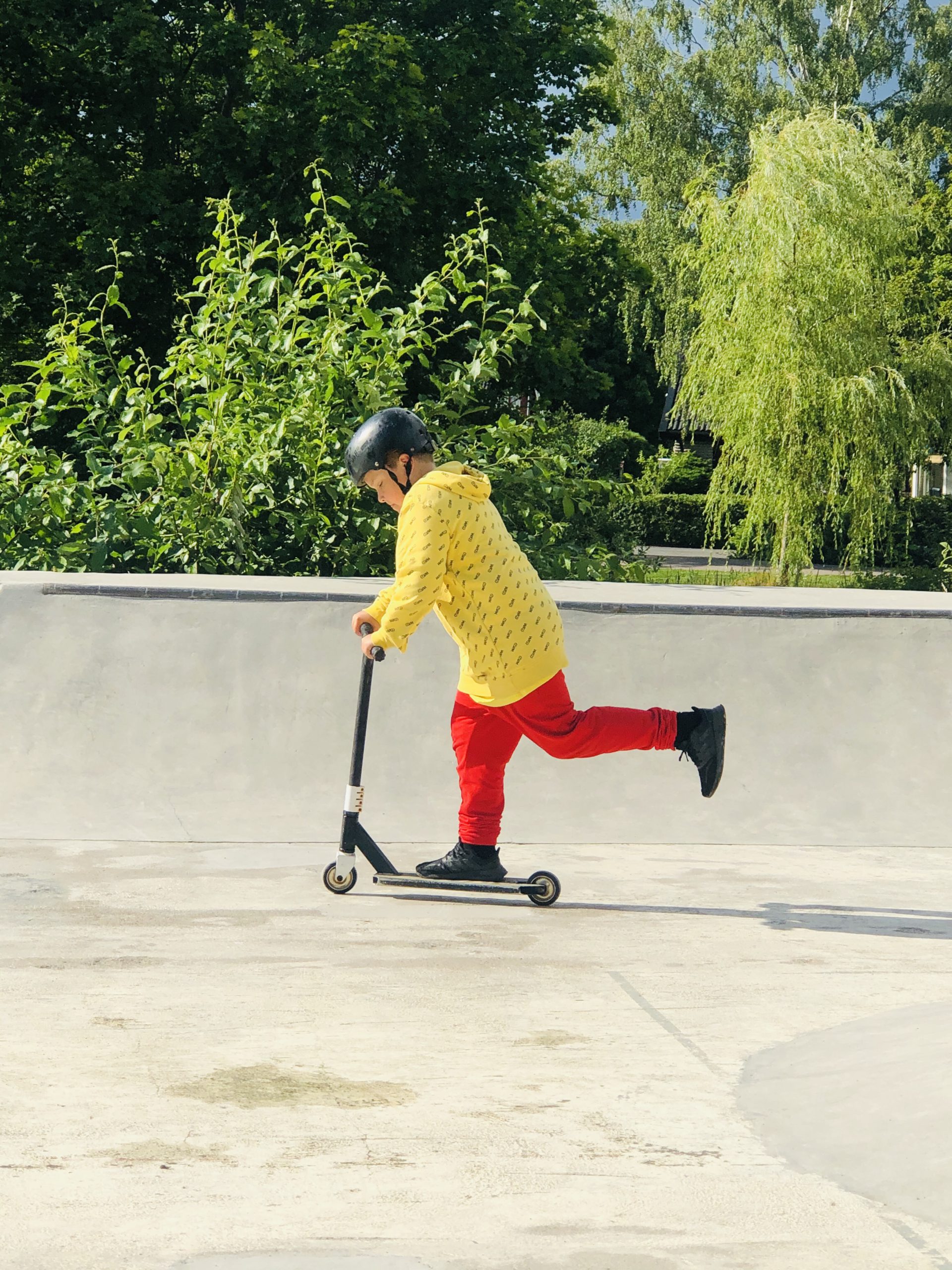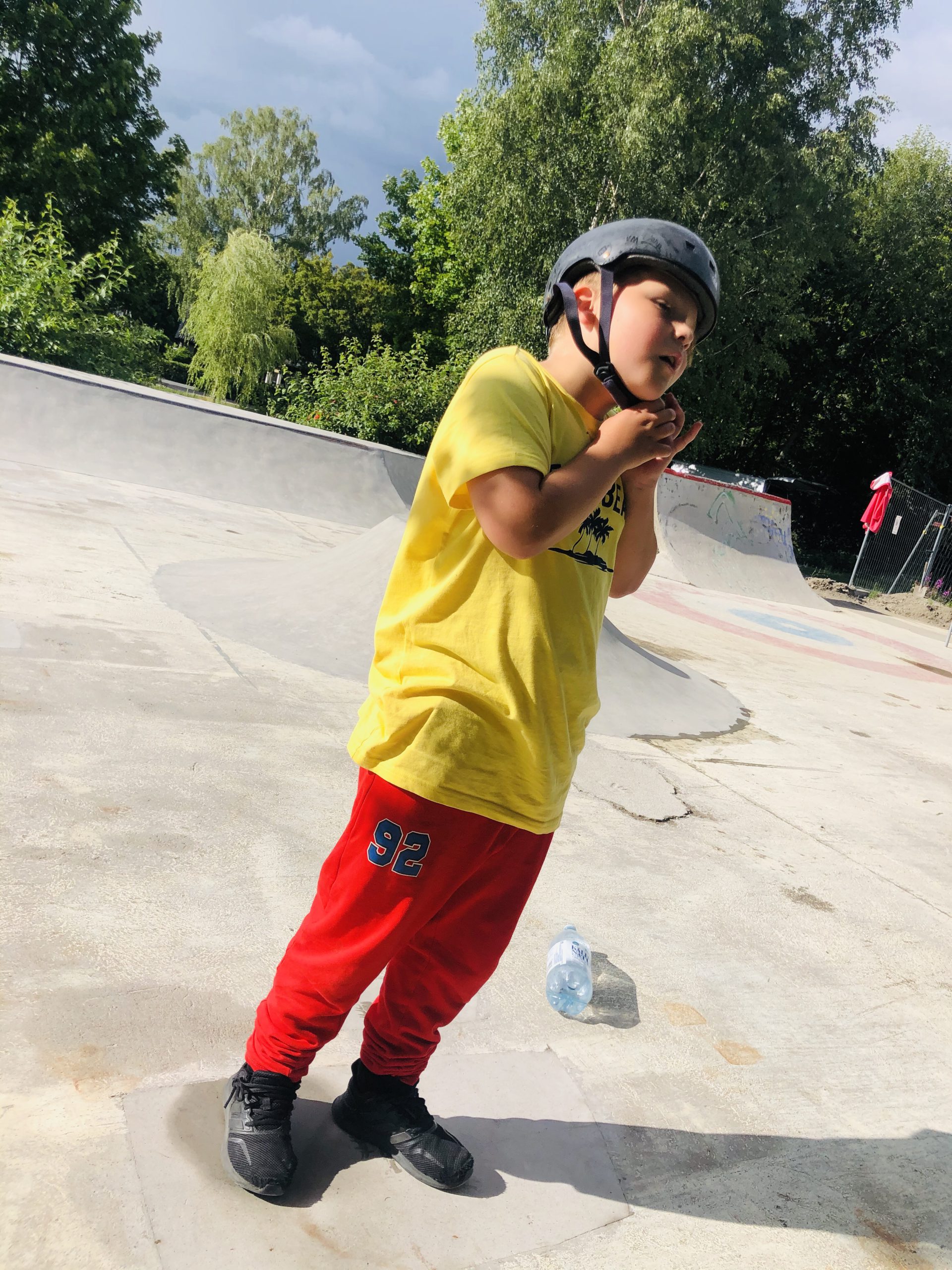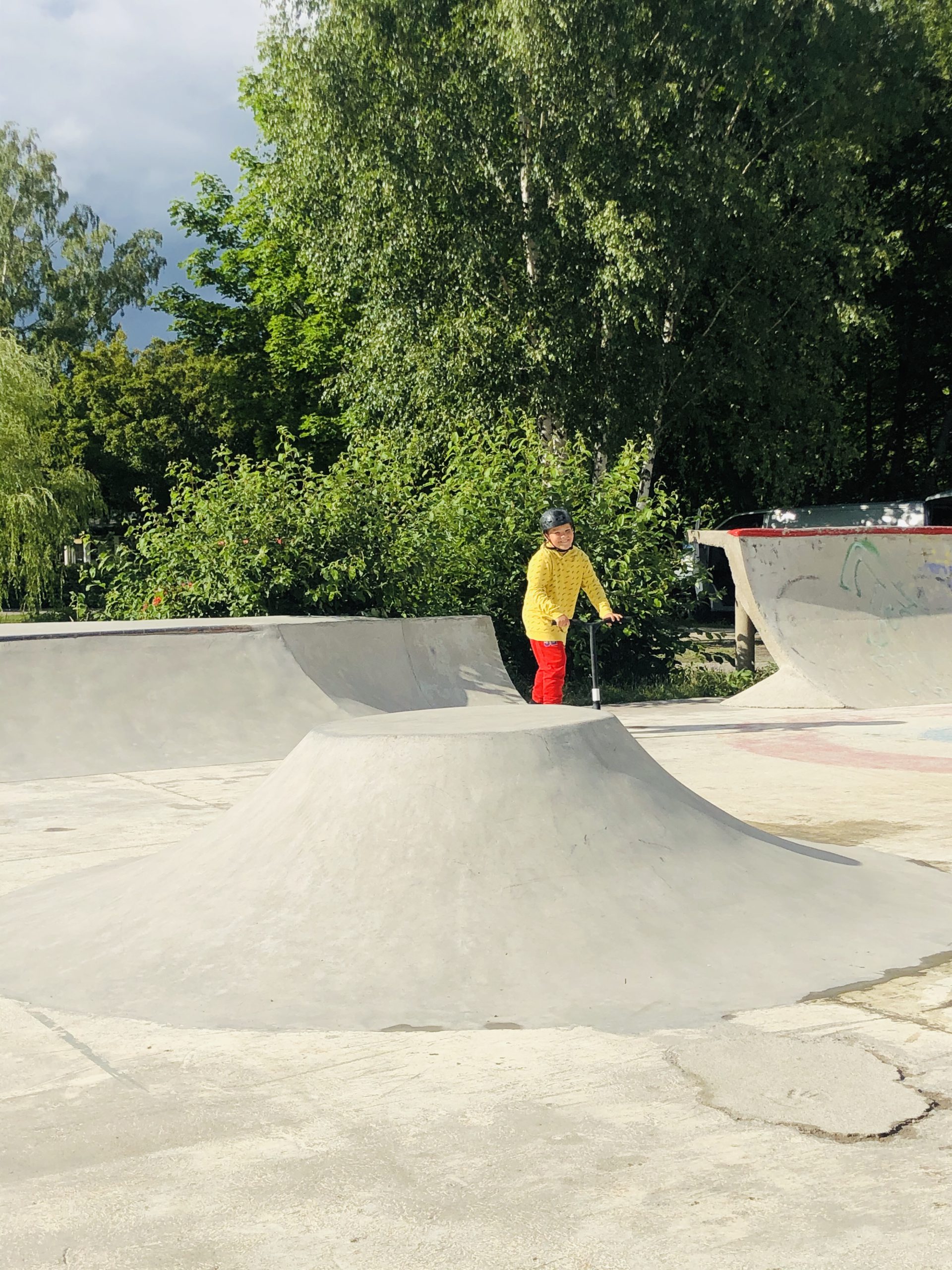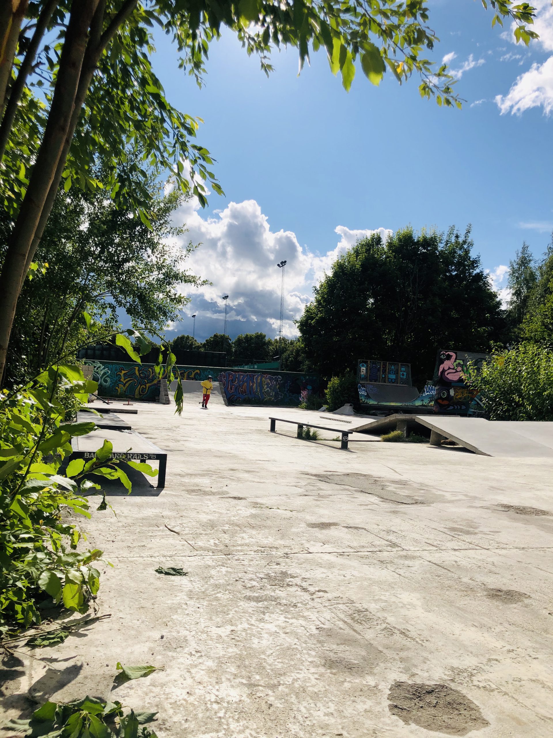 Efter dagens alla skurar och åskoväder så sprack det upp lagom till vi landade på skateparken. Det var första gången vi besökte det faktiskt, toppenbra!