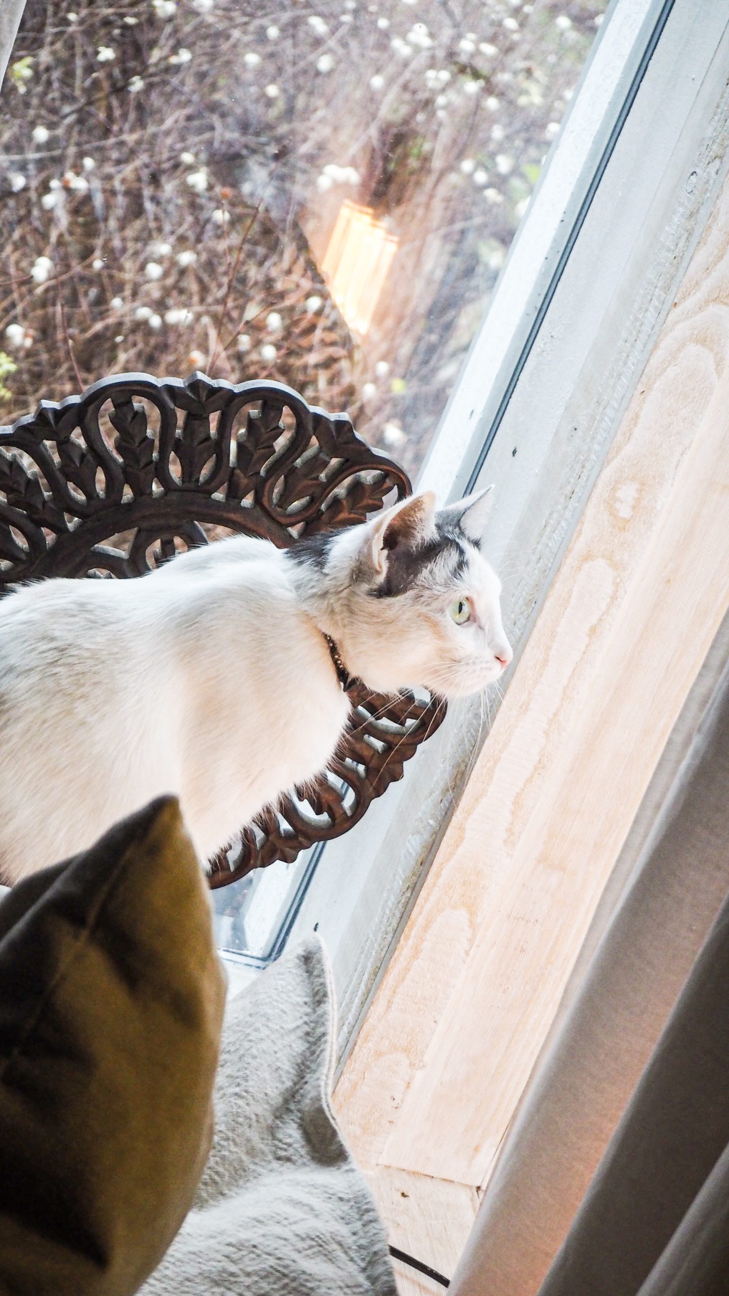 Så där sitter vår kisse också, man kan se hennes favoritplatser för det är små nosavtryck på fönstren