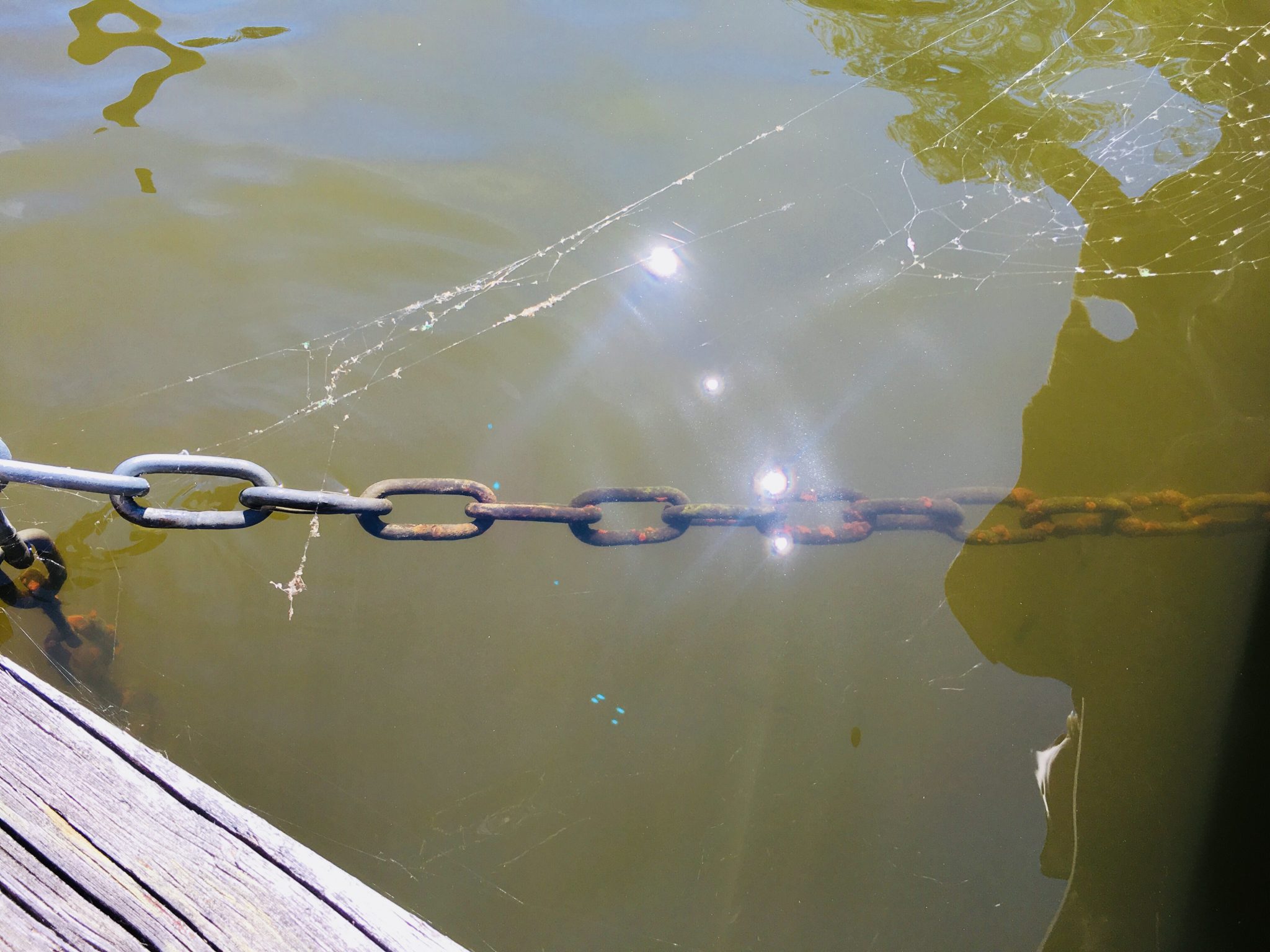Ja ni som bor såpass till kan kanske se till botten hos er. Mälaren är en skithög till sjö. Haha…. i alla fall i närheten av oss. Dock så tyckte jag den här bilden blev lite cool med kedjan och spindelnätet.