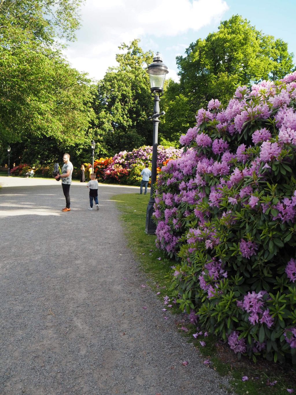 Efter att Tony slutat jobba så kom han och hämtade oss och vi styrde vidare mot Djurgården. Vi ville njuta av vädret lite. Blommorna på vägen till gräsplanen var helt fantastiskt. Rododendro om jag inte har helt fel?! Men när blir dem såhäääär stora? I Love it! Jag vill också ha!