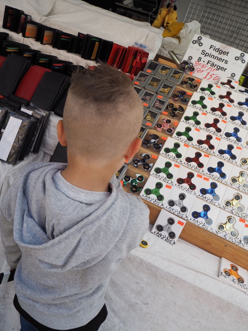 Efter Espressohouse gav vi oss iväg ut på torget för att kolla runt lite. Jag kunde nästan ana att det skulle finnas dessa förbaskade snurrgrejer. Fidgetspinner för hela slanten.