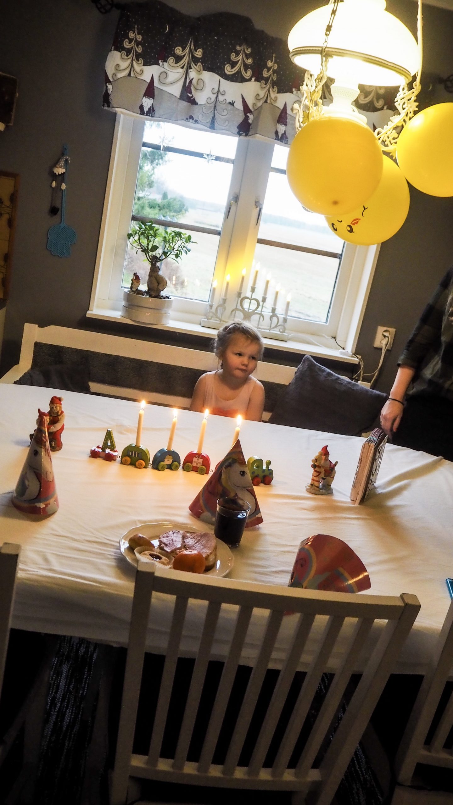 Igår åkte vi till Tonys bror, sambo och hennes barn för att fira lilla Gia som fyllde 4 år. Kolla så fint dem fixat utanför huset?! Emelie tyckte dock att renen såg mer ut som en dvärgsnauzer! Haha….