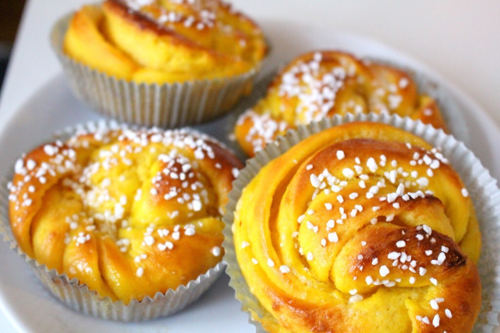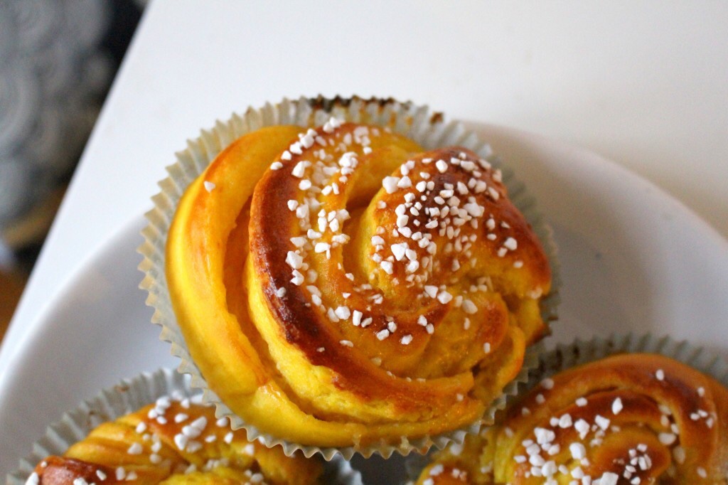 Vill du baka de godaste saffransbullarna till jul (eller när du vill förresten, de är ju lika goda året runt) så kan jag verkligen tipsa om dessa. Varenda gång de bakas här hemma så är det strykande åtgång, varje gång jag bjudit på dem vill dem ha recept. Så jag börjar ana att jag skapat ett succérecept på saffransbullar. 🙂 Saffransbullar med vit choklad har något alldeles speciellt över sig, den vita choklad gifter sig med saffransbullen på ett alldeles förträffligt sätt alltså. Om du nu funderar på vilket saffransbullerecept du ska använda så tipsar jag verkligen om detta.