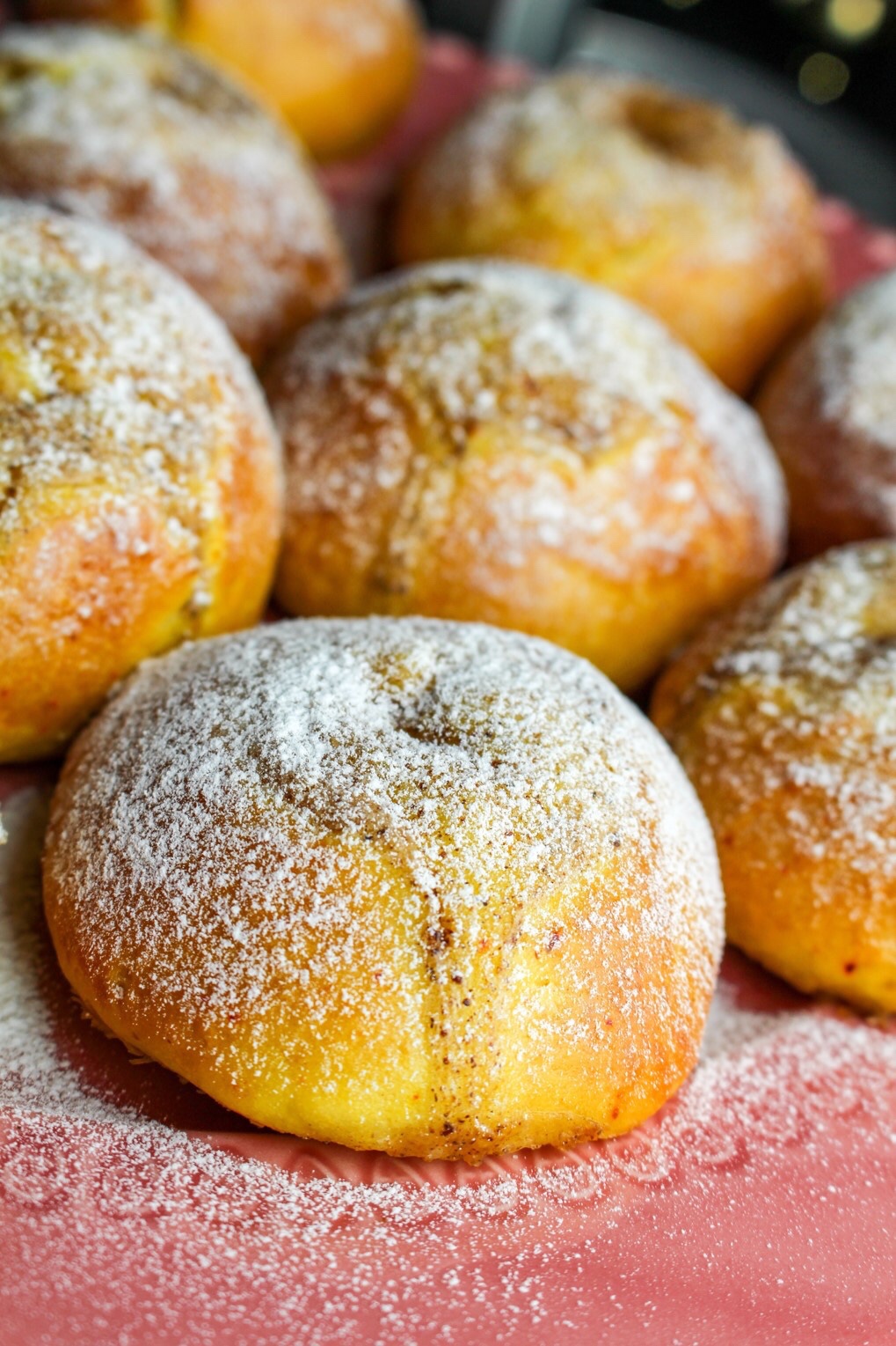 3) Blanda färskost, saffran, strösocker och vaniljsocker. Vispa grädden och blanda den med färskostsmeten.