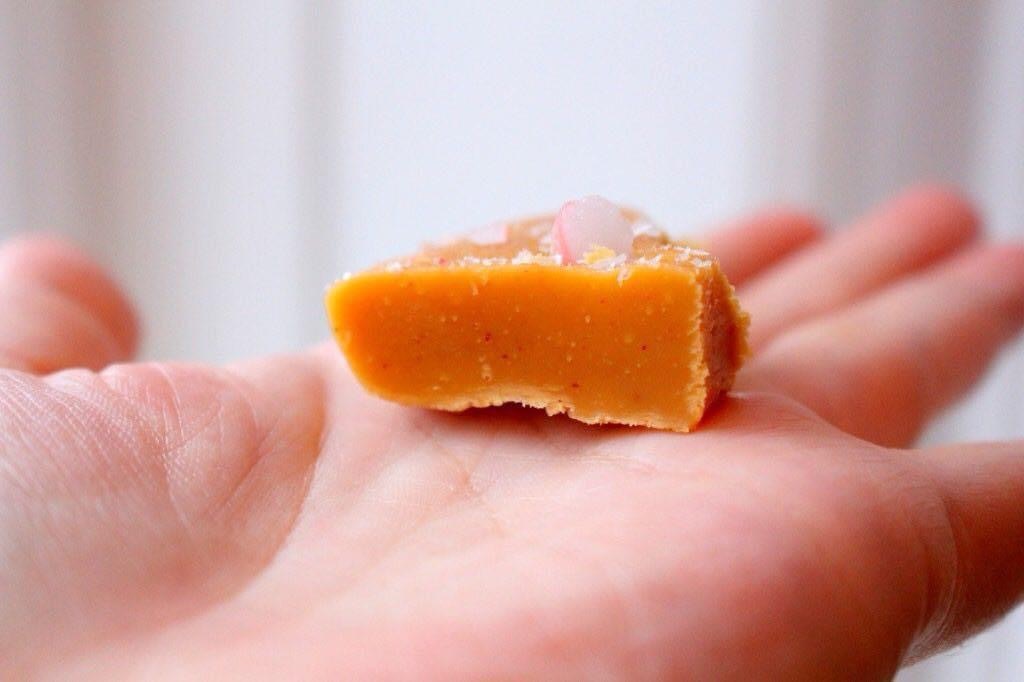 2) Strax innan fudgen kokat klart ska du ha i saffran. När fudgen är klar tar du av den från plattan.