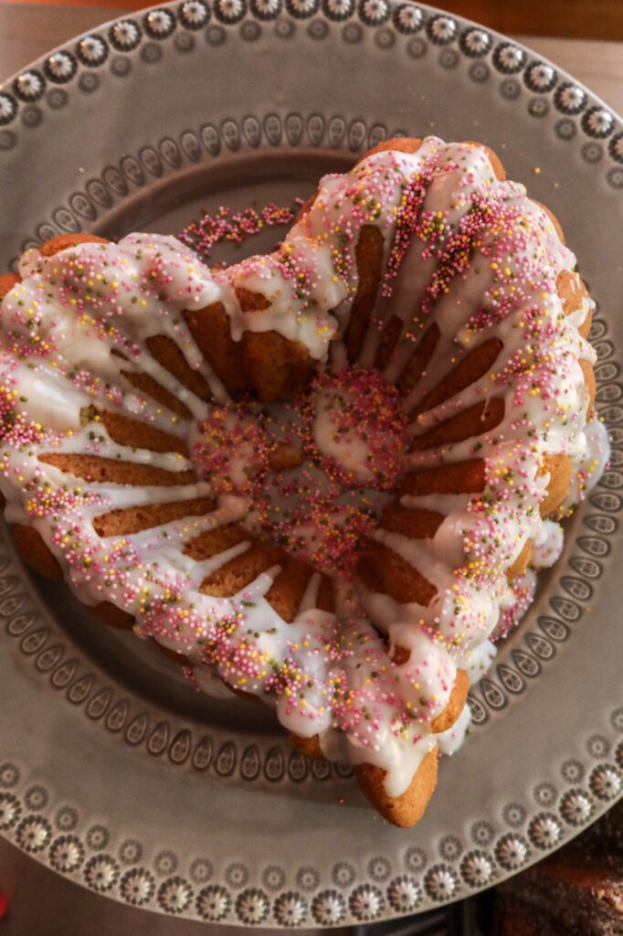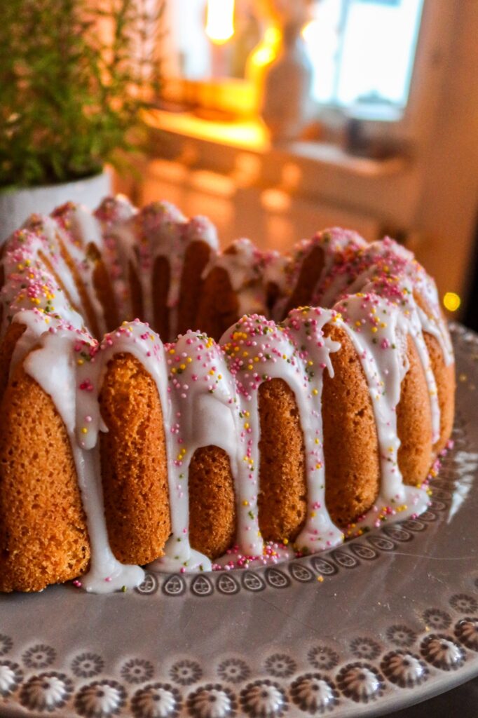 Chokladkakan med dulche de leche blev också sådär galet god! Bakade den samtidigt. Den syrliga glasyren på den här sockerkakan gör den sådär extra på något vis. Den säga sockerkakan med syrliga glasyren blir en vansinnigt god kombo. Så strösslet på det då, strössel är aldrig fel.