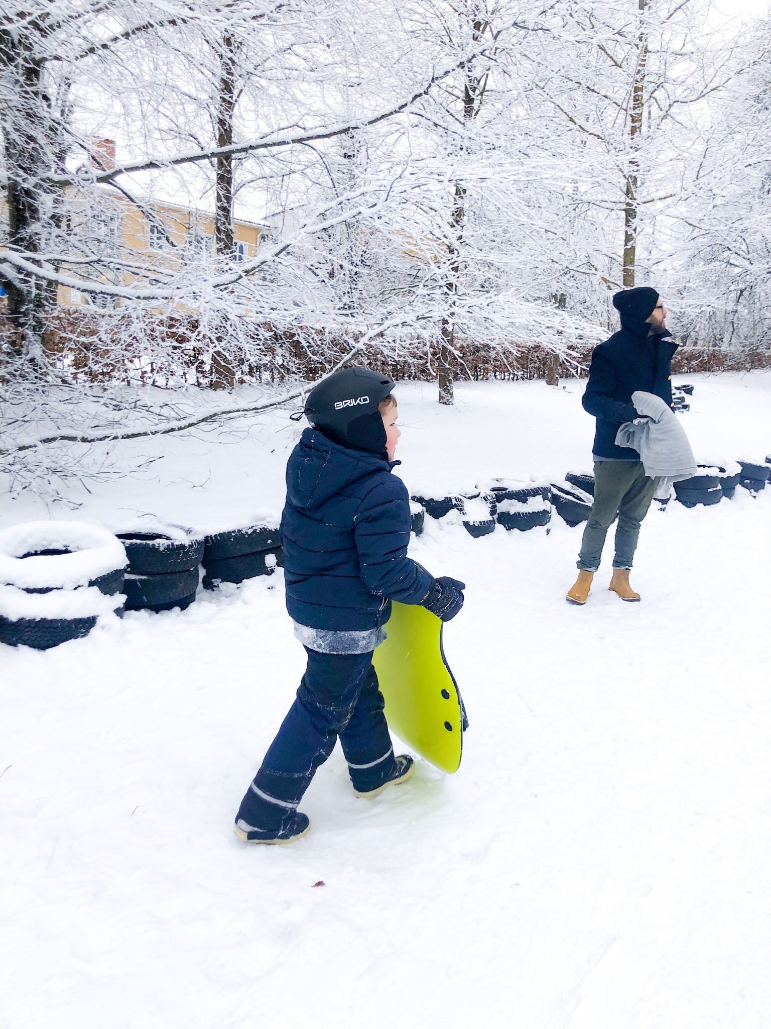 Sen blev det pulkabacken idag igen. Kan inte få nog av dessa röda kinder alltså. Se honom fladdra upp och ned i den här backen är så jädra stimulerande för mammahjärtat.
