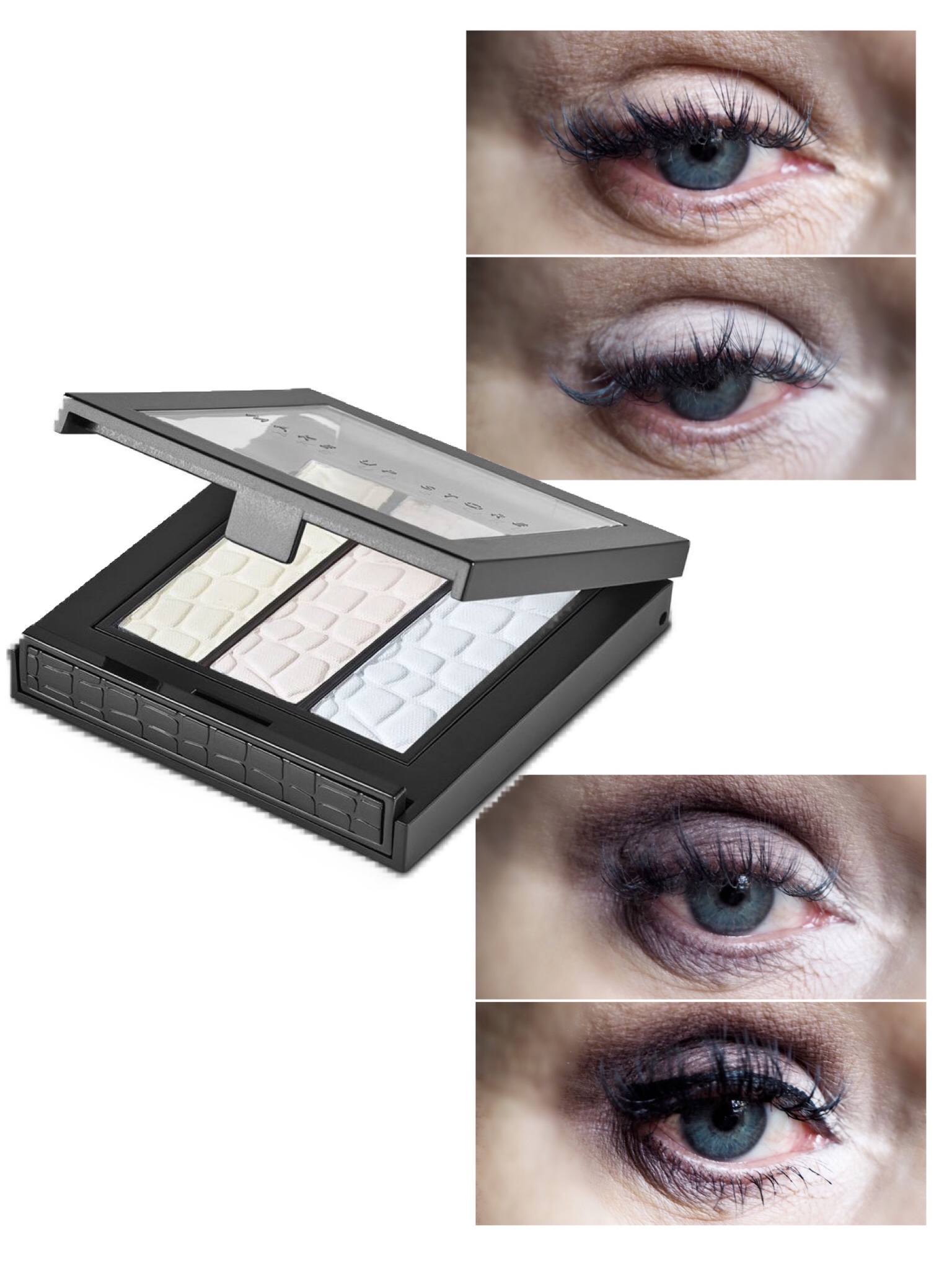 Tre perfekta skuggor som är matta. Jag brukar också applicera ljus skugga längst in i ögonvrån när jag vill att ögat ska ”poppa” lite så man ser lite piggare ut. Denna heter ”Trio Flash Matt”.
