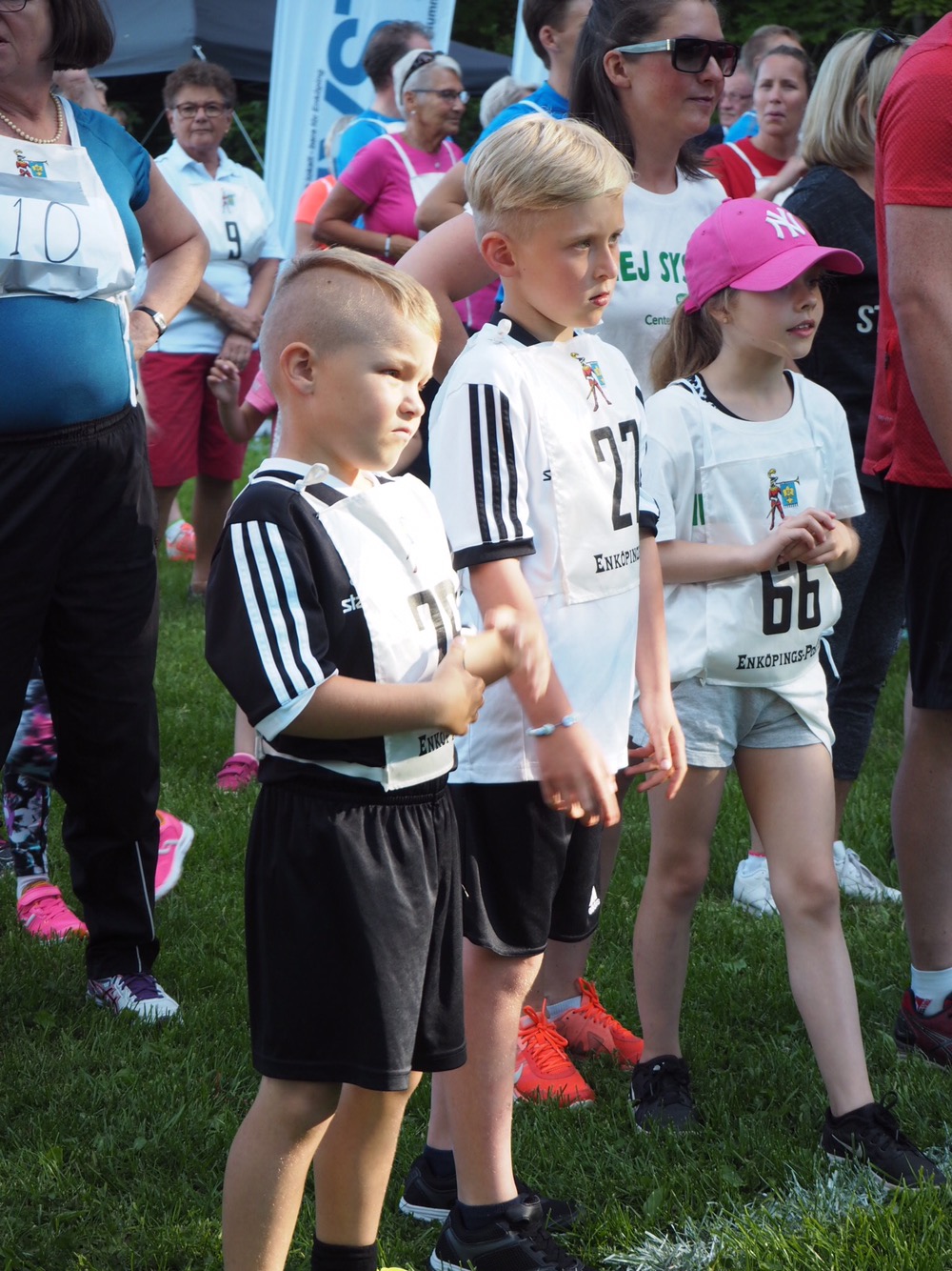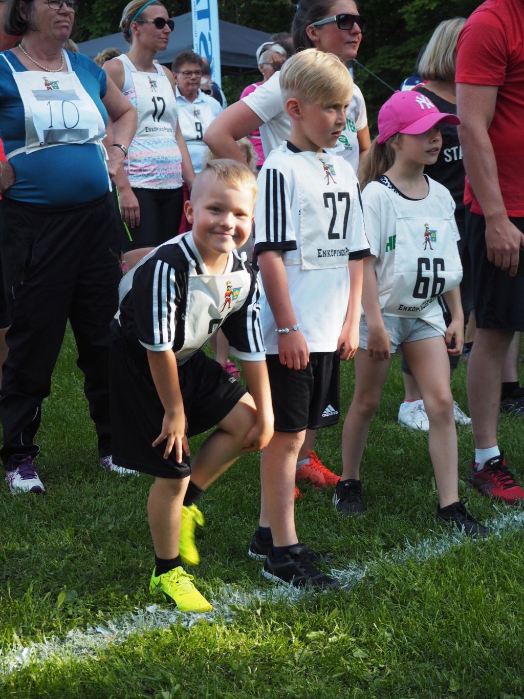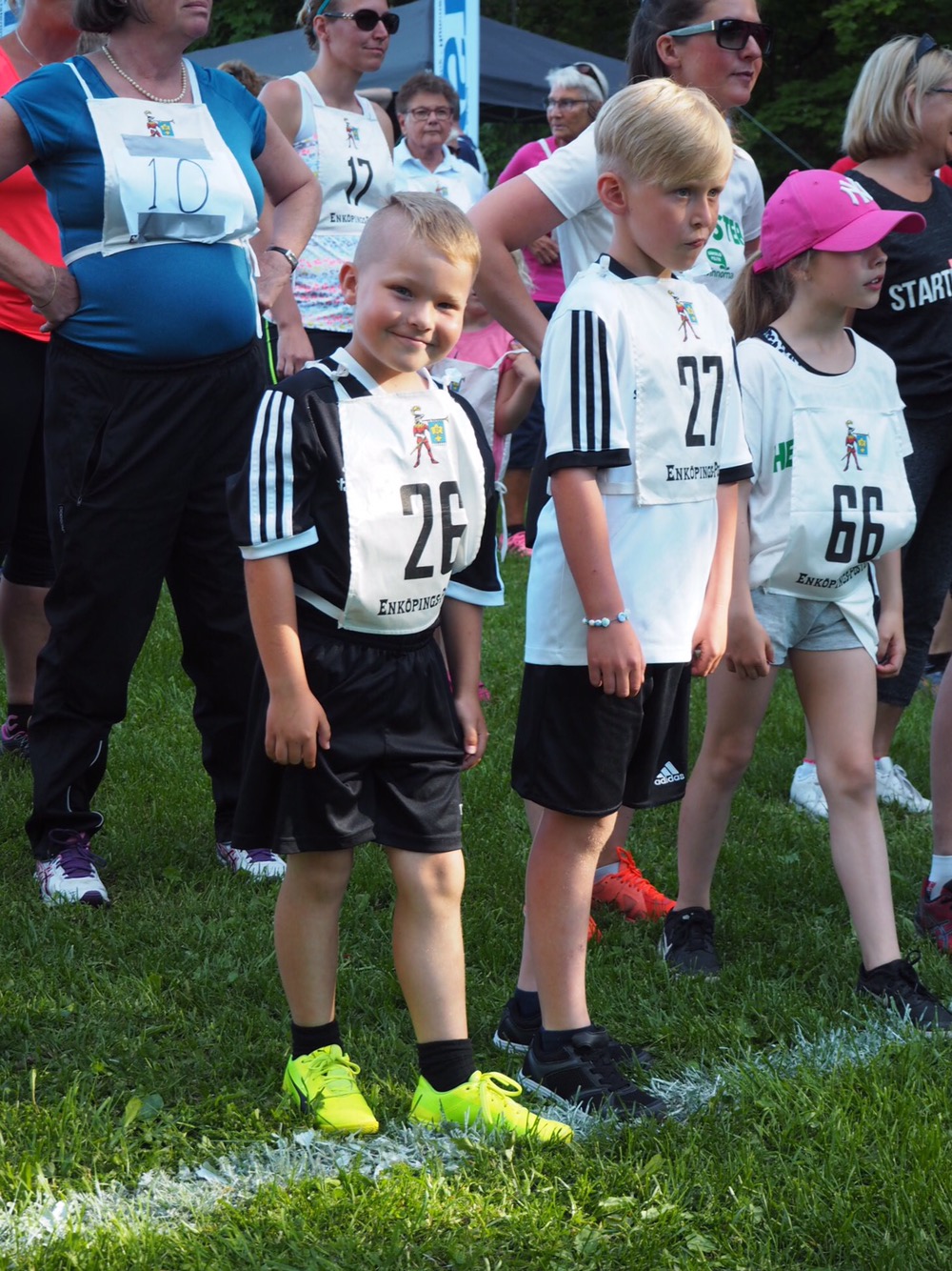 Startlinjen med två riktigt laddade gossar! Bredvid skymtar fina Stina och mamma Sarah också.