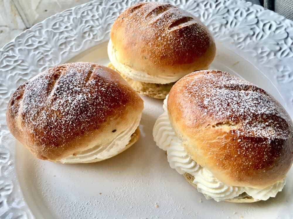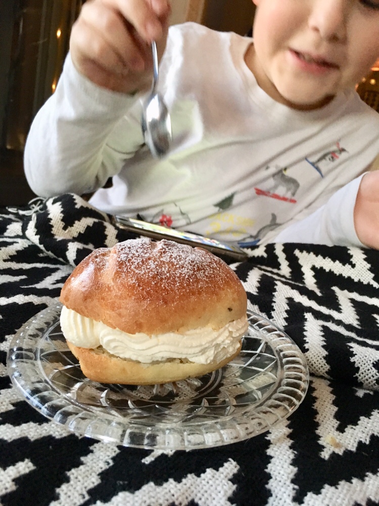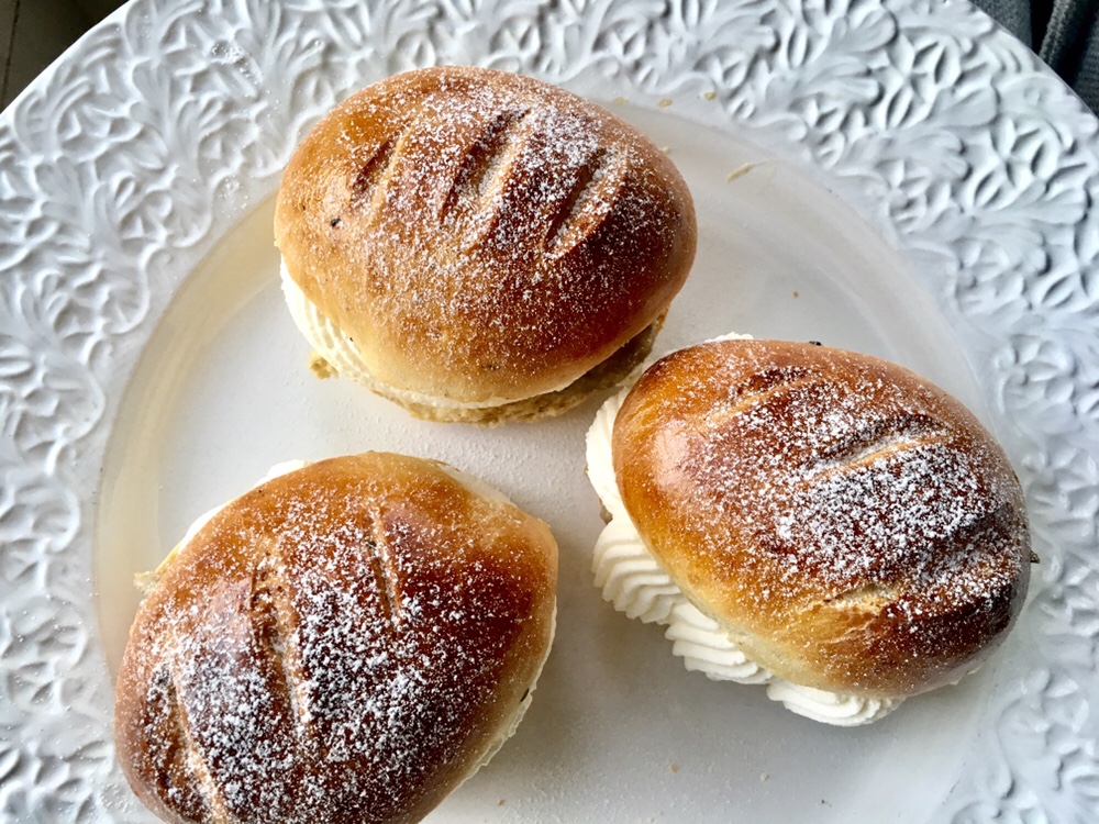 Jag formade för skoj skull baguetter av själva bullarna. Baguette med lite fyllning känns nyttigare än semla.