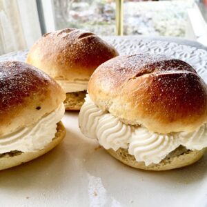Har gjort fyllningen, använde ett par droppar bittermandel arom som inte innehåller nötter eller mandel. Blev jättebra. Tack för receptet ❤