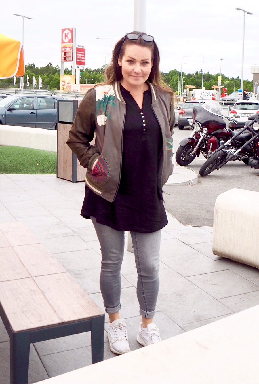 Lång tunika, stretchiga jeans, sneakers och en liknande bomberjacka! Skööööönt….dessutom idag när det inte varit särskilt varmt. Vet faktiskt inte hur jag kunde sväva ut så med färgerna idag, jag som brukar vara stenhård med matchning, men idag gick jag bananas som det ser ut! Haha…tror jag fick bråttom när jag skulle lämna Milo på fotbollen.