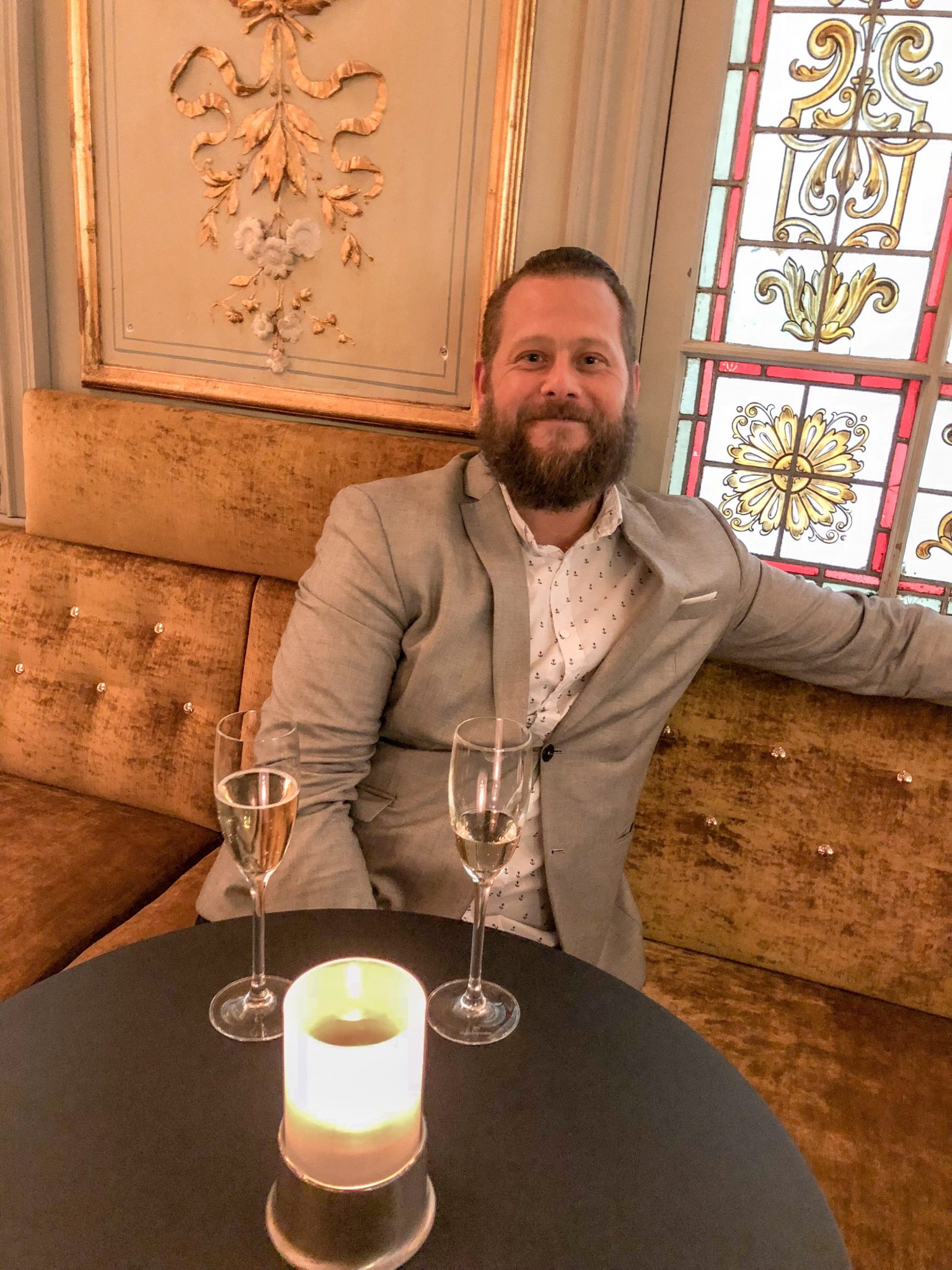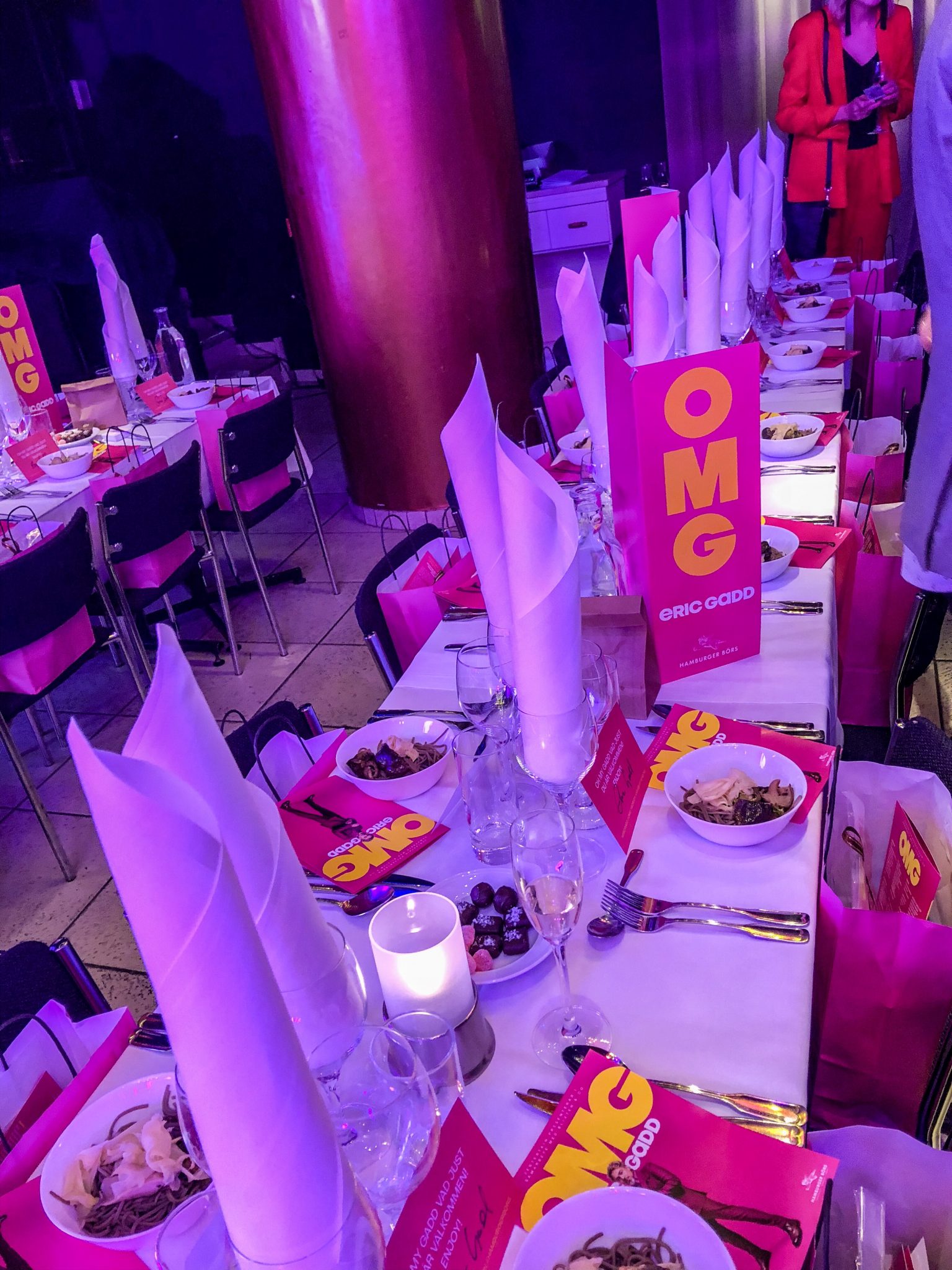 Vi blev bjudna på bubbel (både alkoholfritt och vanligt) när vi klev in på Hamburger Börs. Sprang på fina Lina och hennes väninna i foajén också.